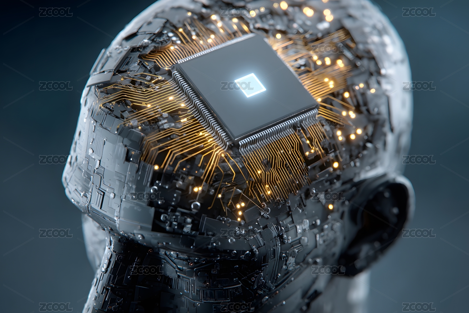 人脑与芯片融合的科技概念图