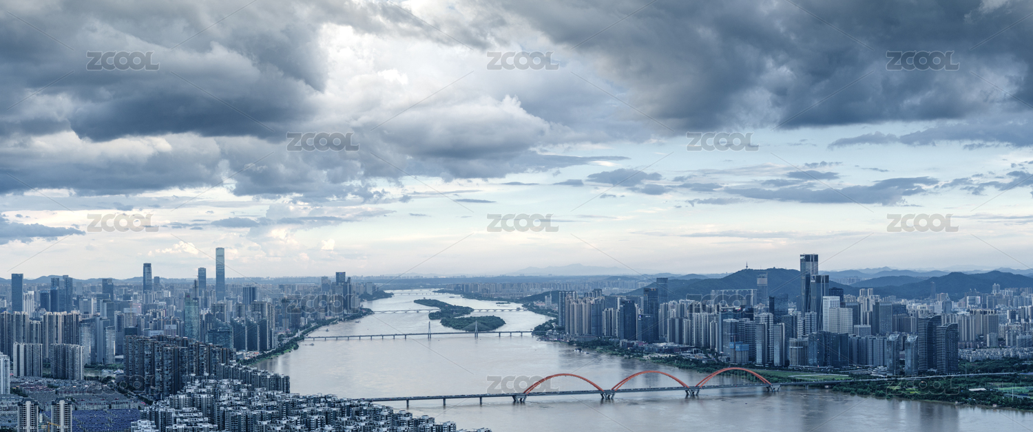 中国湖南长沙城市天际线航拍图