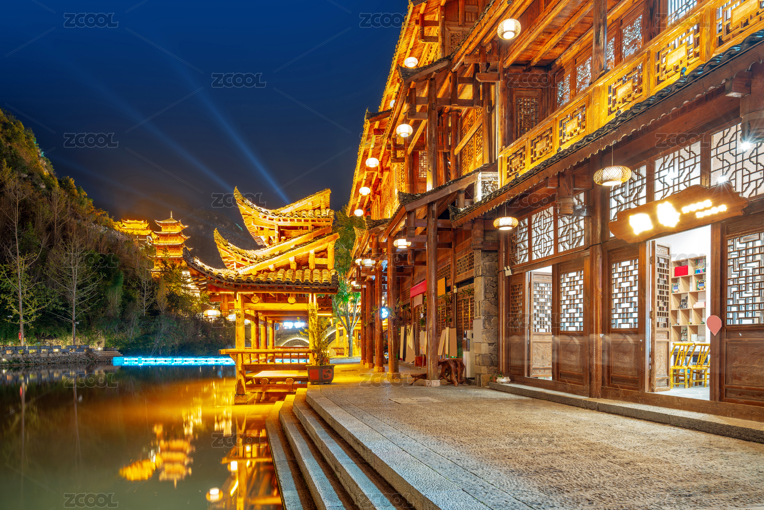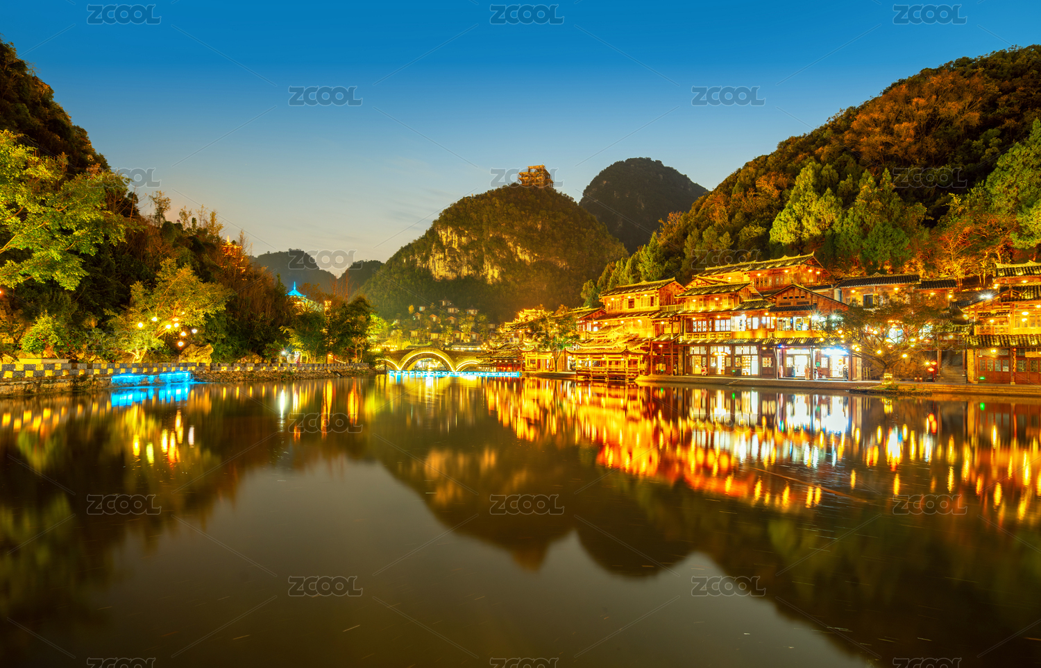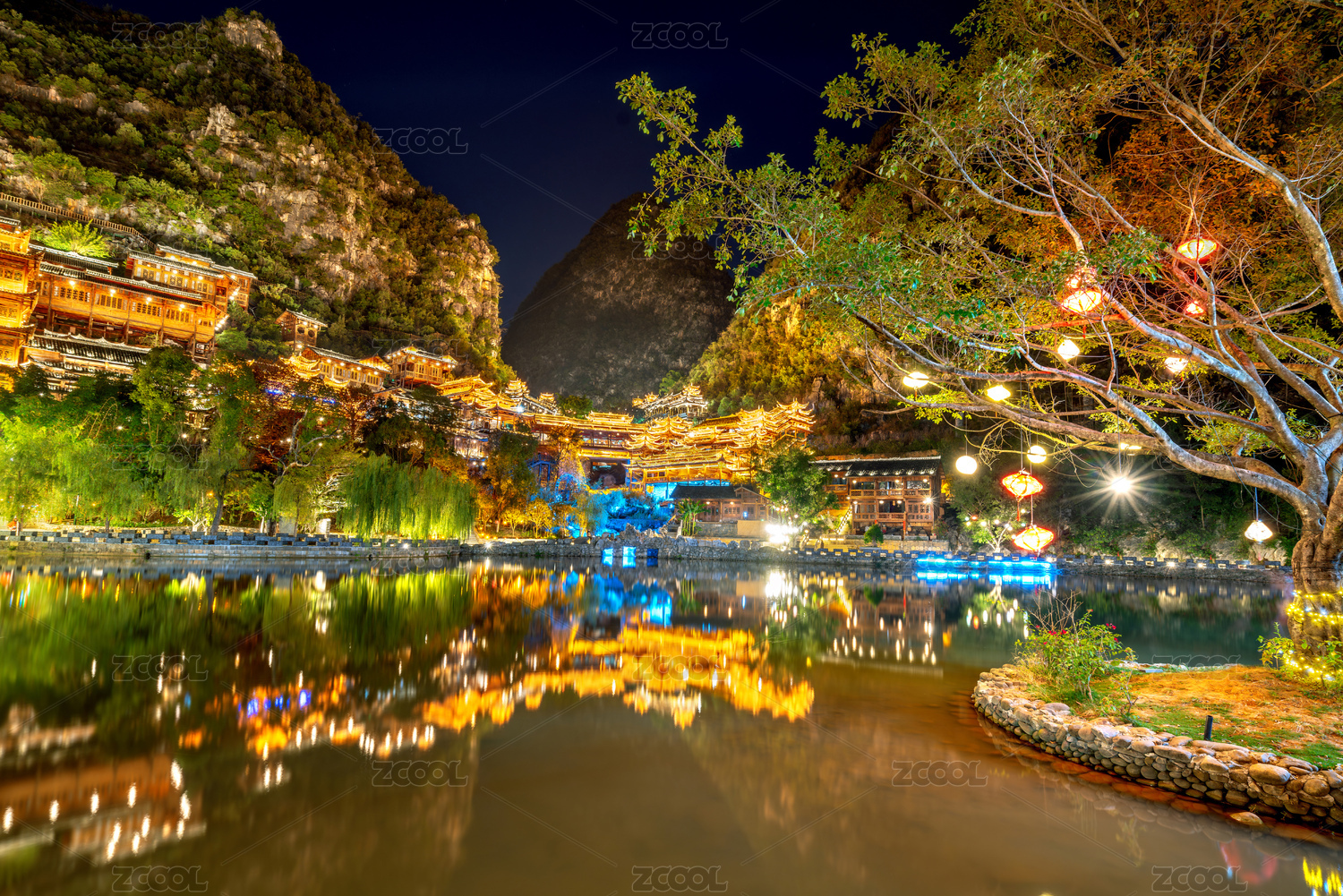中国贵州兴义峰林布衣风景区夜景