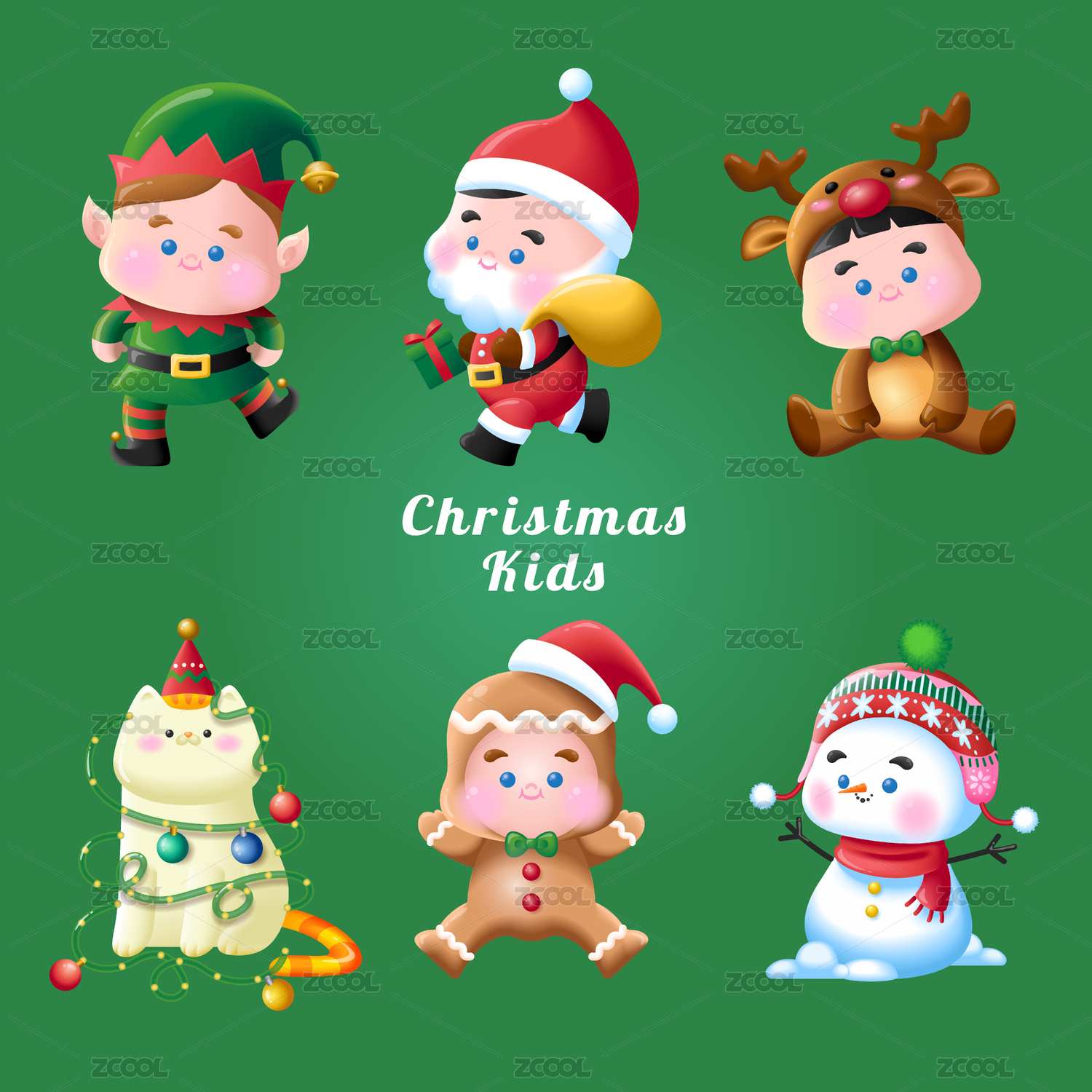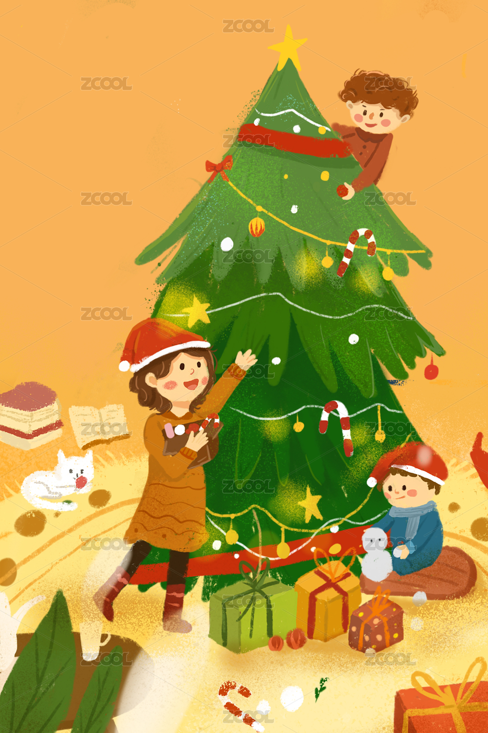 卡通圣诞节小孩装饰圣诞树