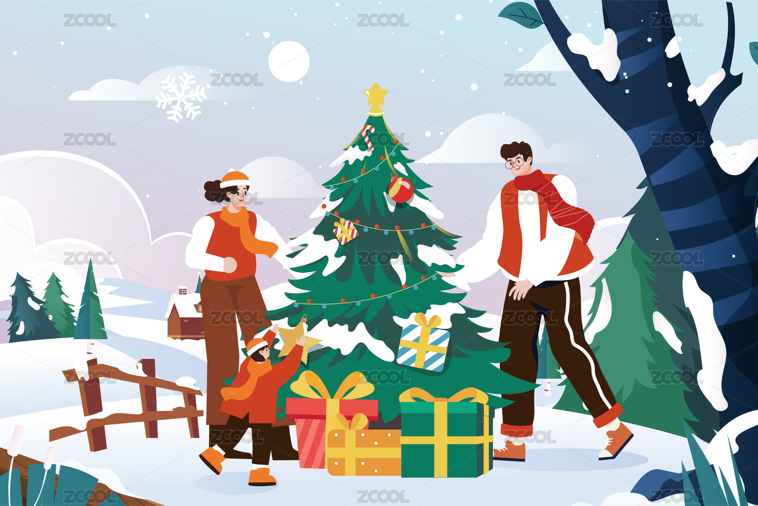 一家人过圣诞插画