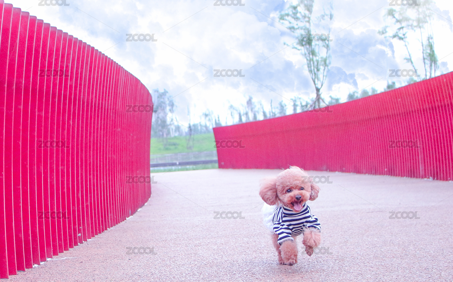 长春南溪湿地一只咖啡色泰迪犬奔开心的奔跑