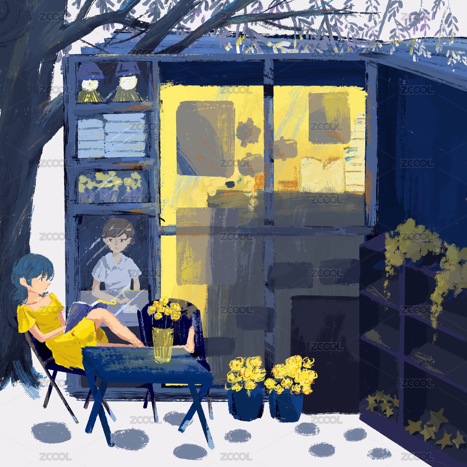秋天银杏树下拿着书抬头看银杏树的长发女孩