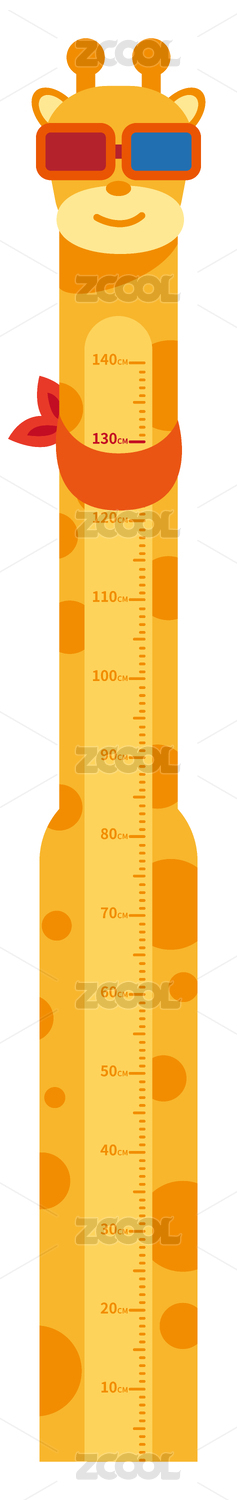 侧面长颈鹿卡通风格身高尺元素
