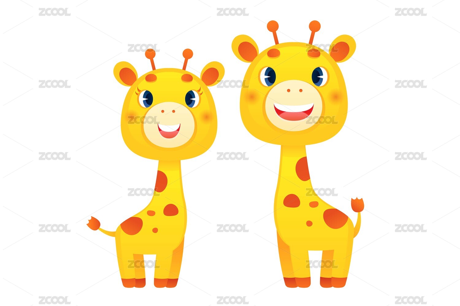 两只卡通长颈鹿