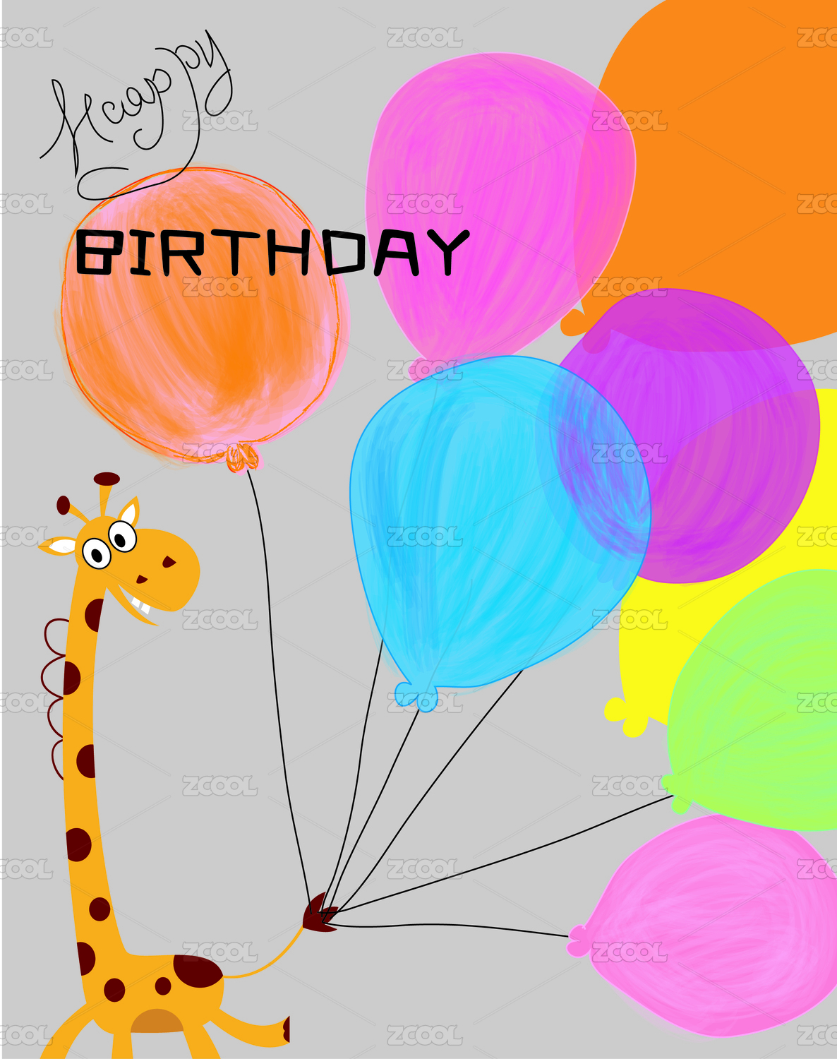 卡通长颈鹿 气球 生日