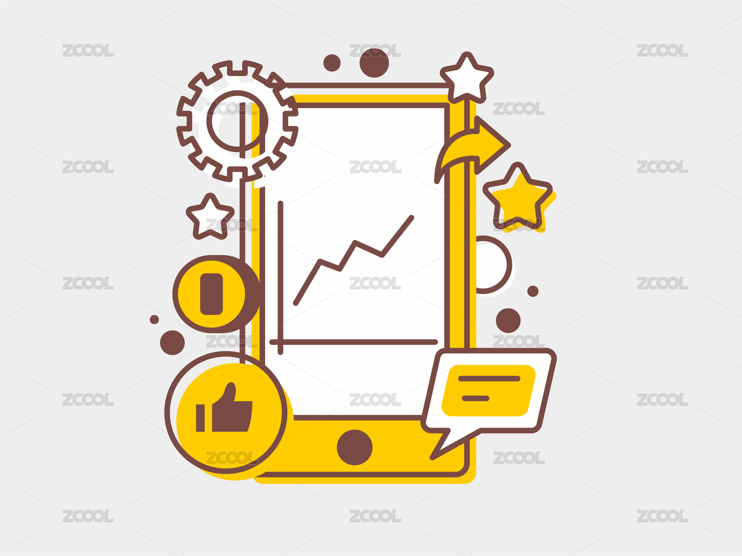 手机屏幕显示折线图矢量插画