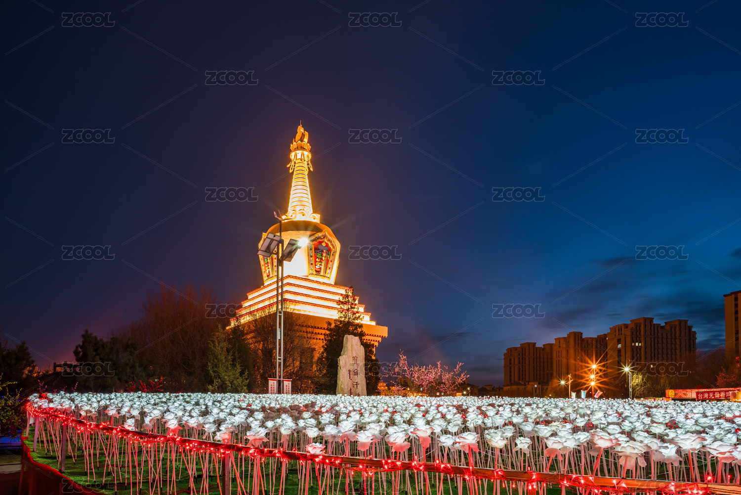 内蒙古呼和浩特塞上老街夜色中的白塔群