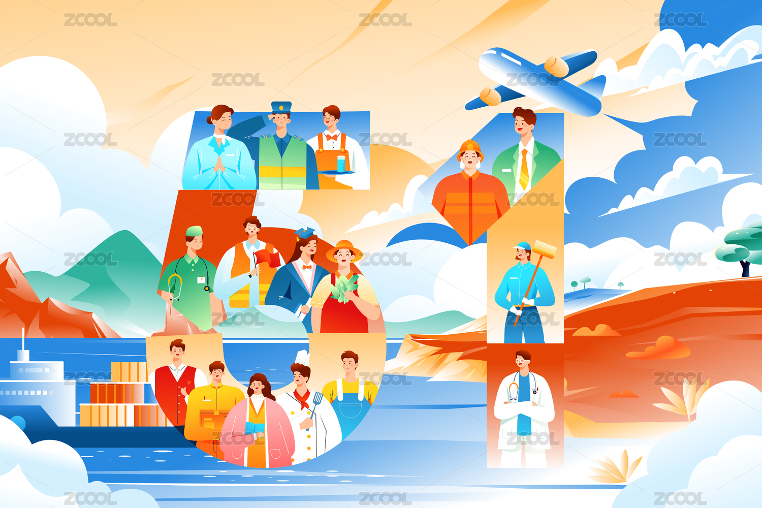 劳动节艺术字矢量插画