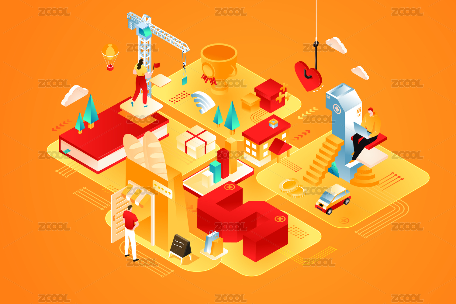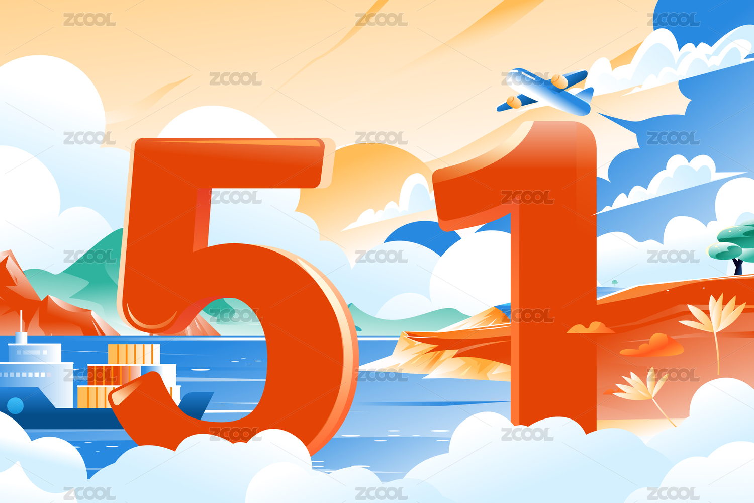 等距劳动节艺术字矢量插画