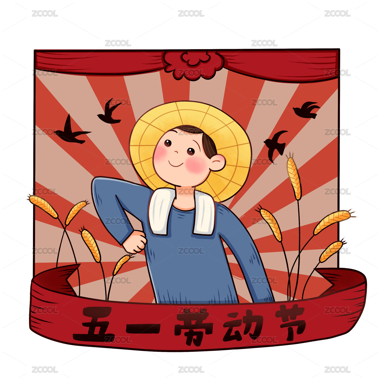 复古风劳动节插画