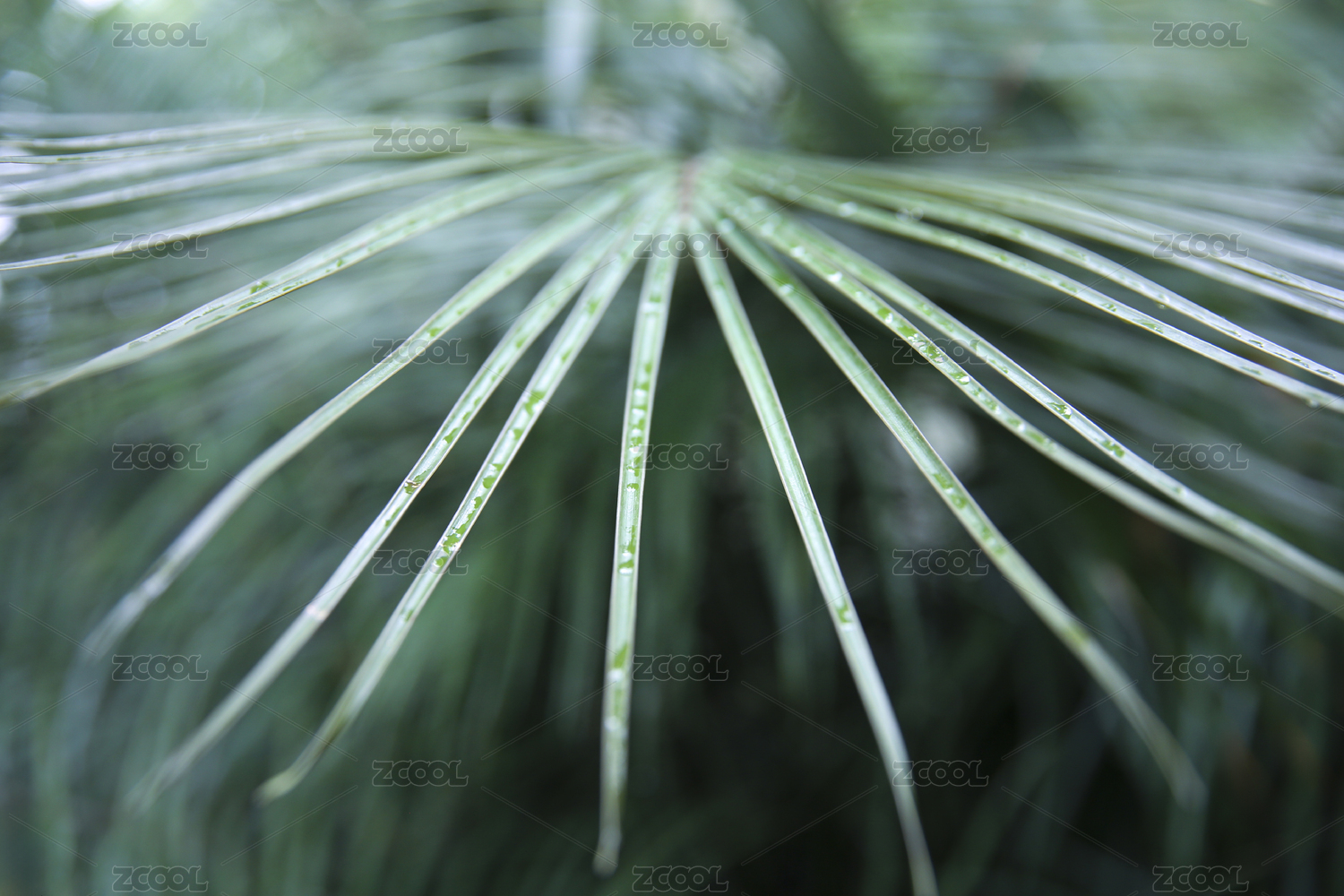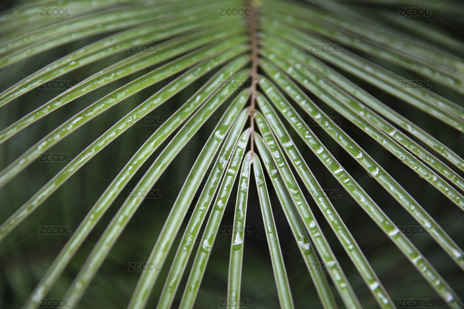 雨后翠绿棕榈叶脉络