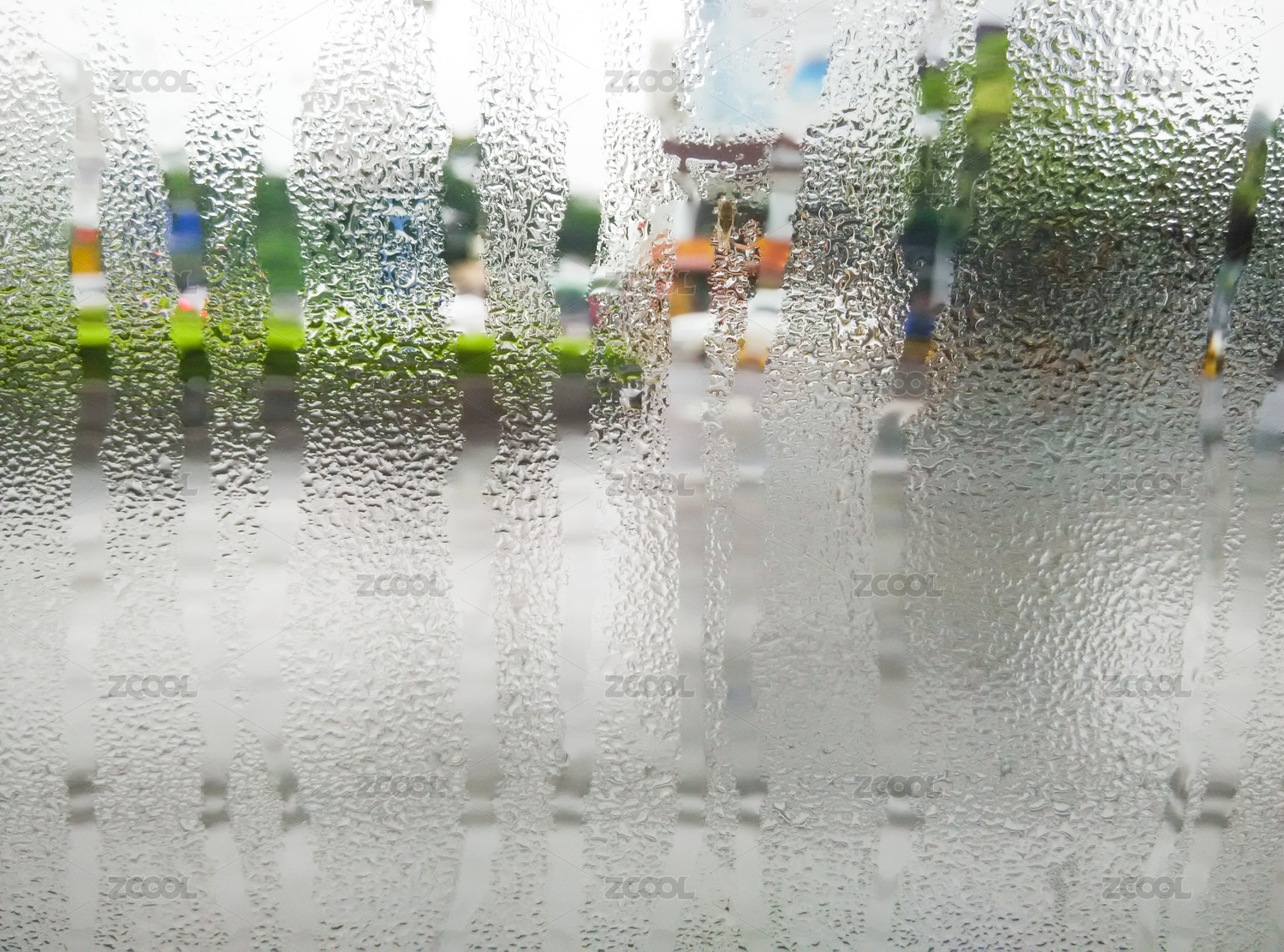 公交车窗玻璃上的雨珠背景纹理