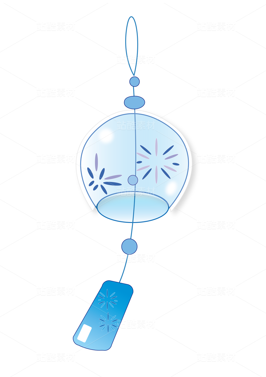 创意卡通 小清新 贴纸 蓝色风铃png免扣透明海报素材