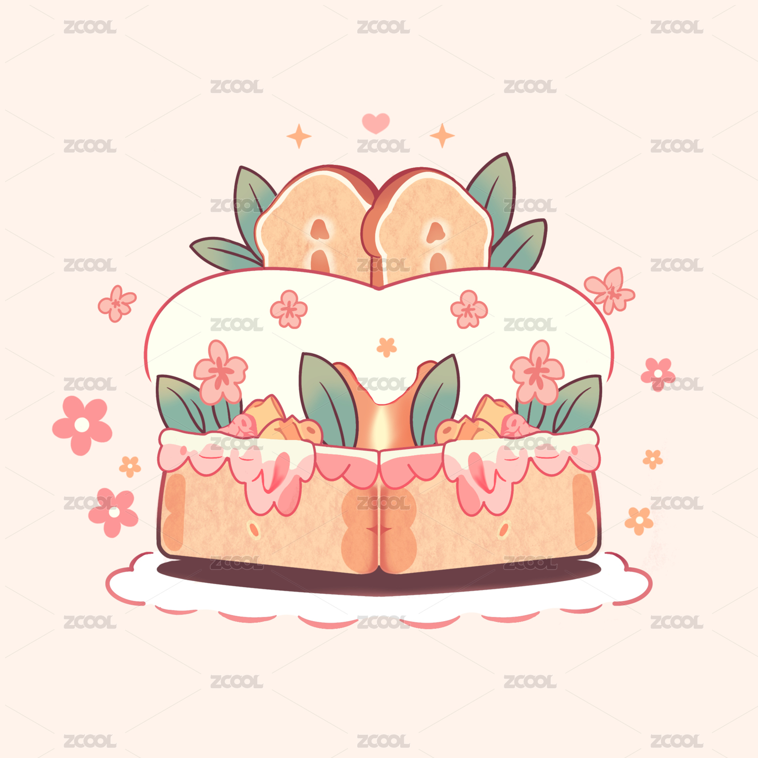 手绘卡通面包片蛋糕