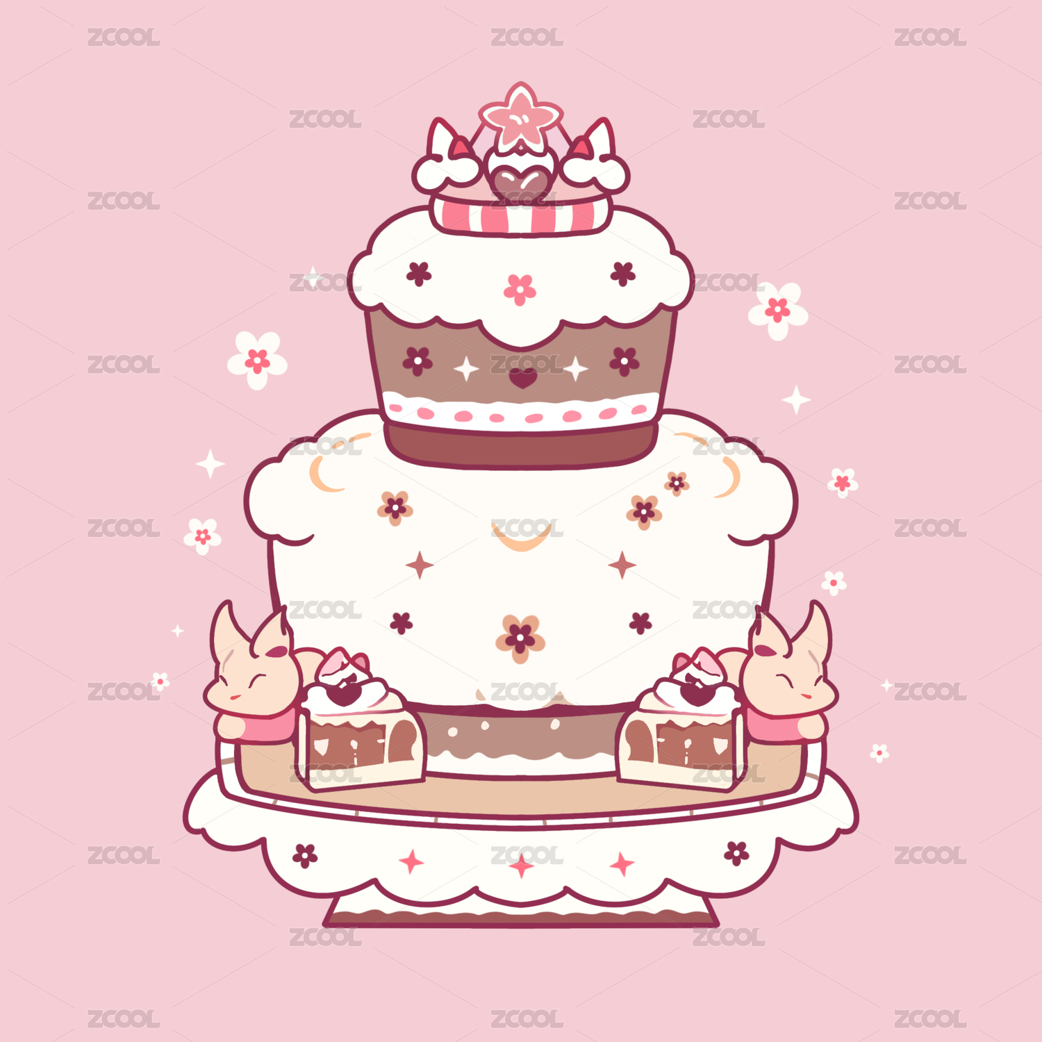 手绘卡通小狐狸蛋糕塔