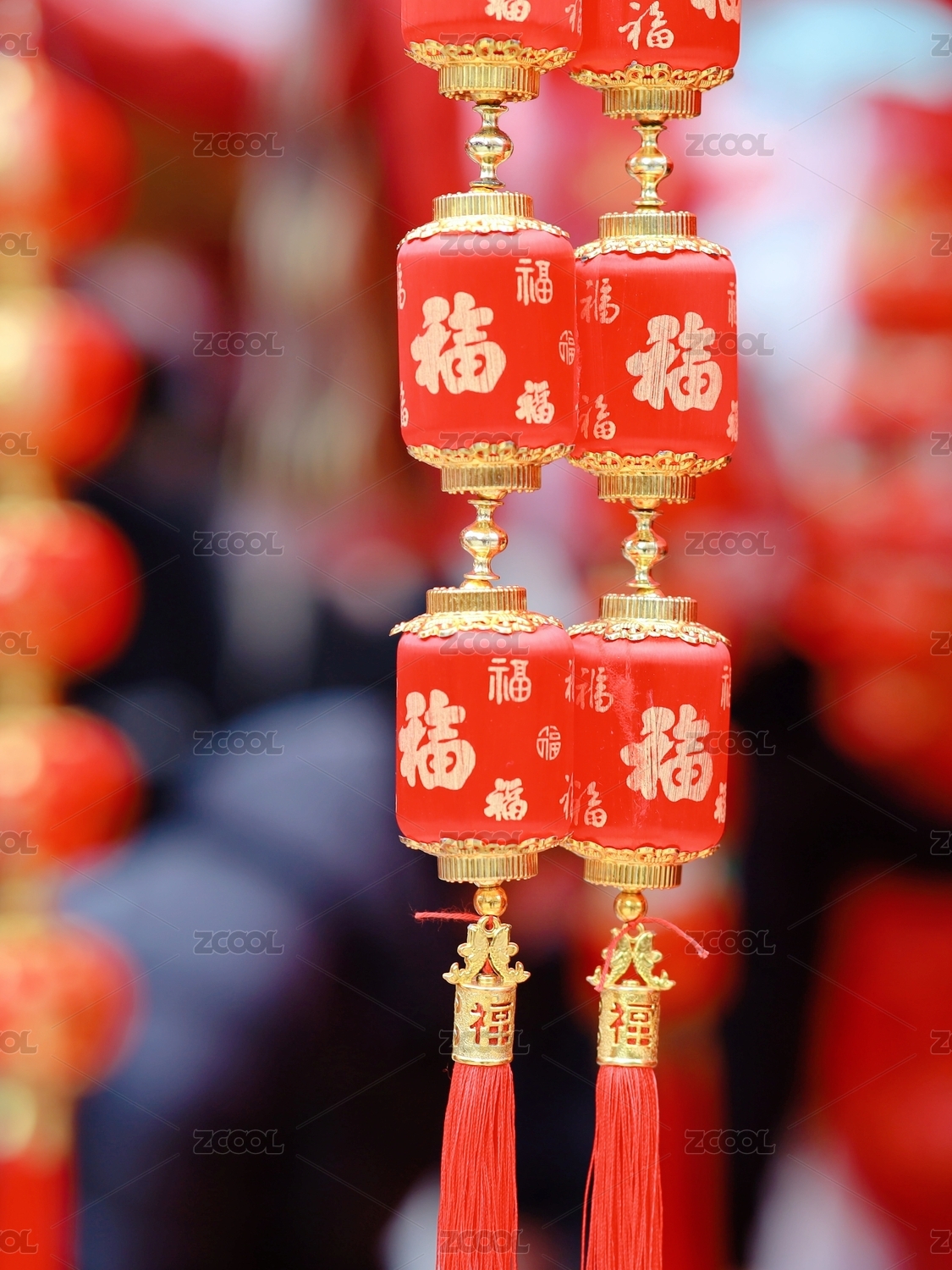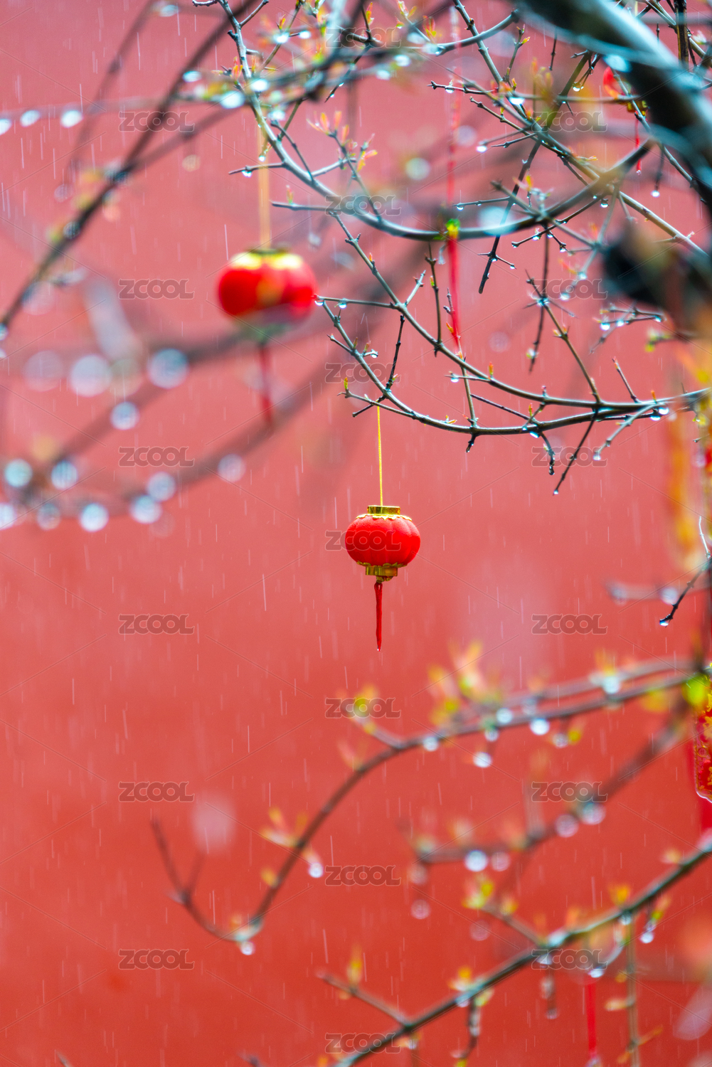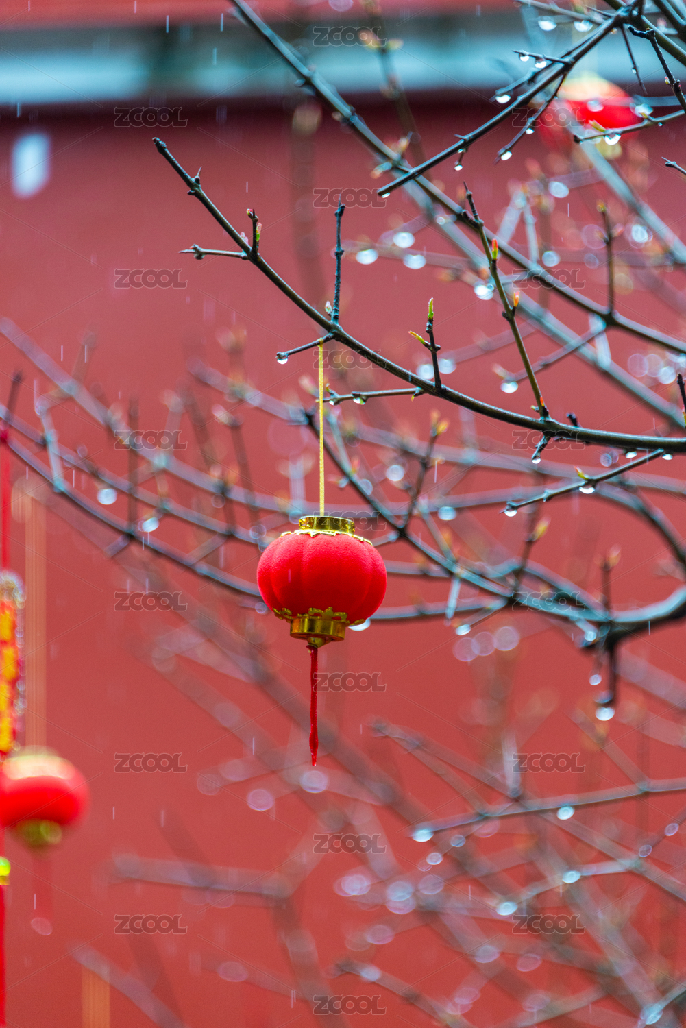 广东省潮州市开元寺红墙树木春节新年挂饰