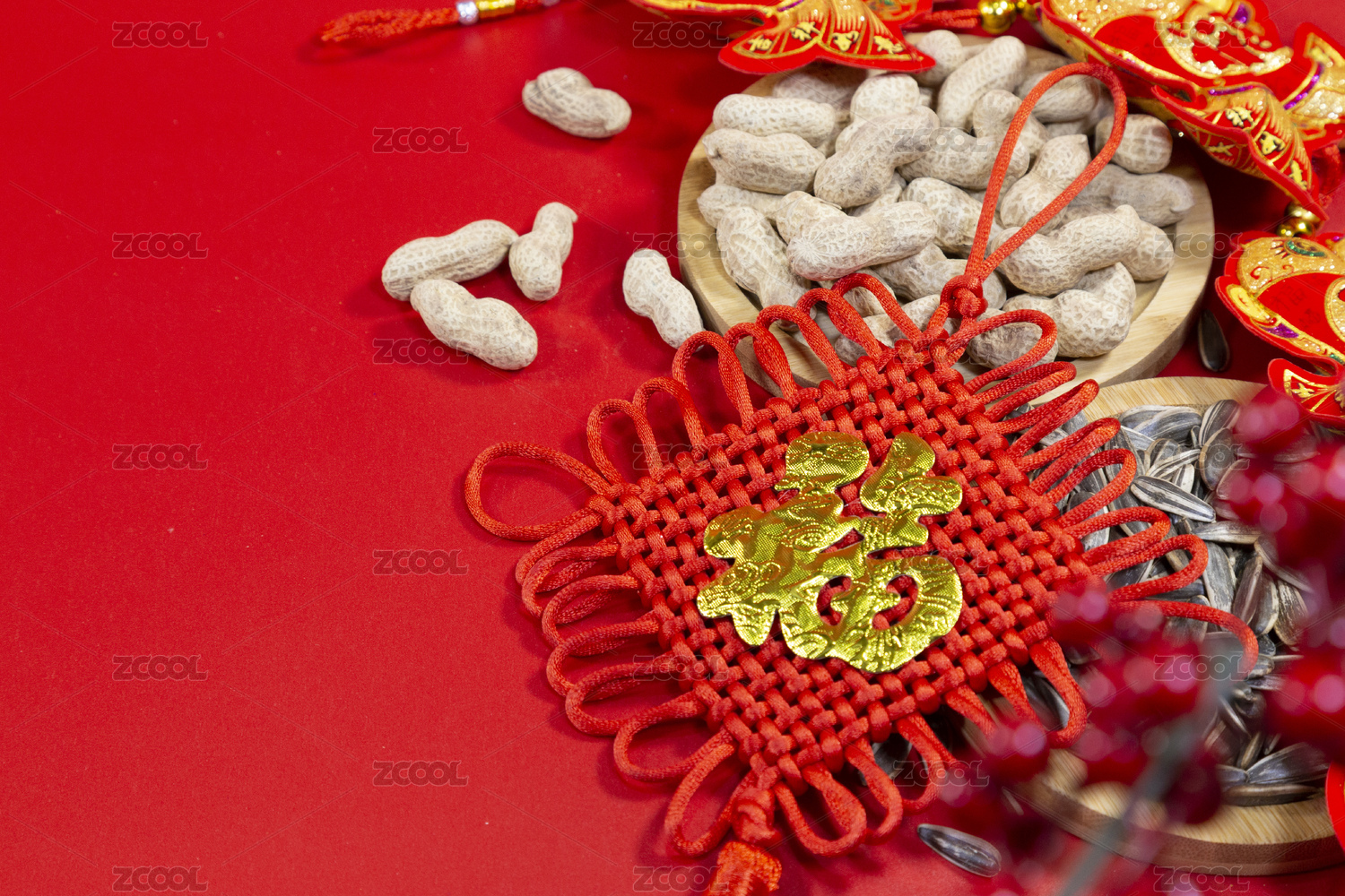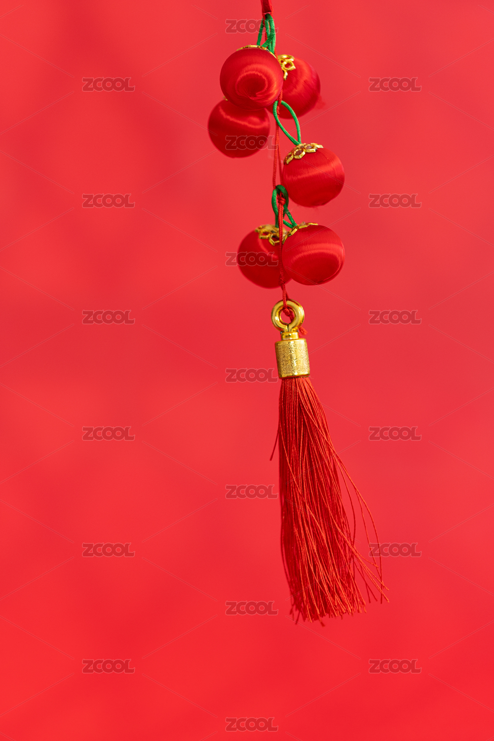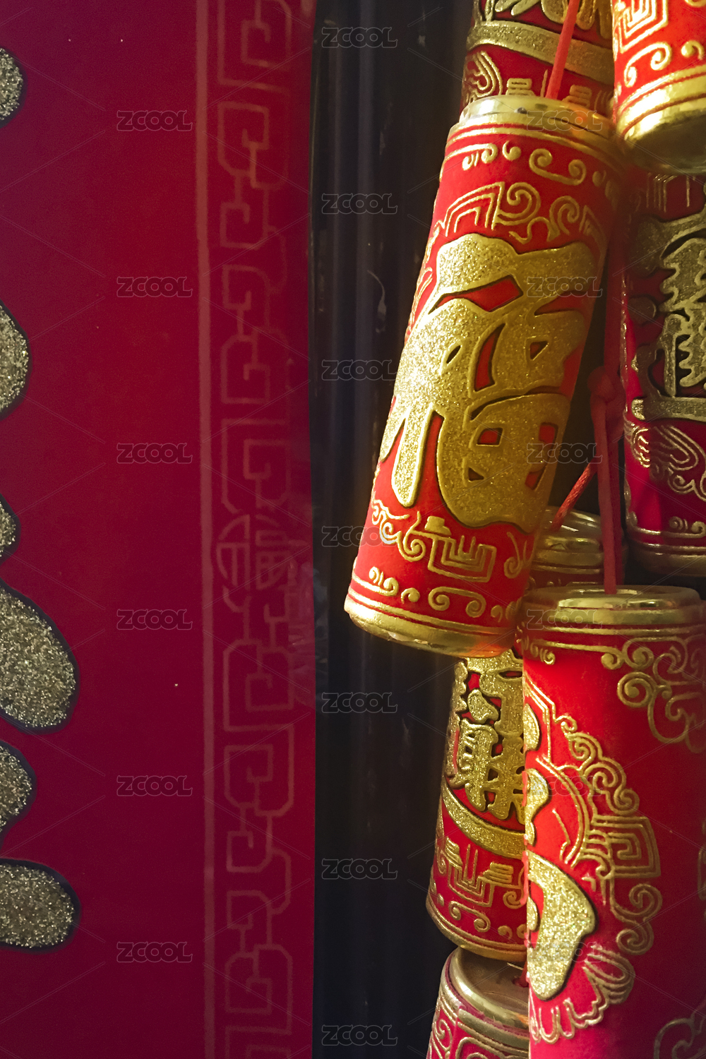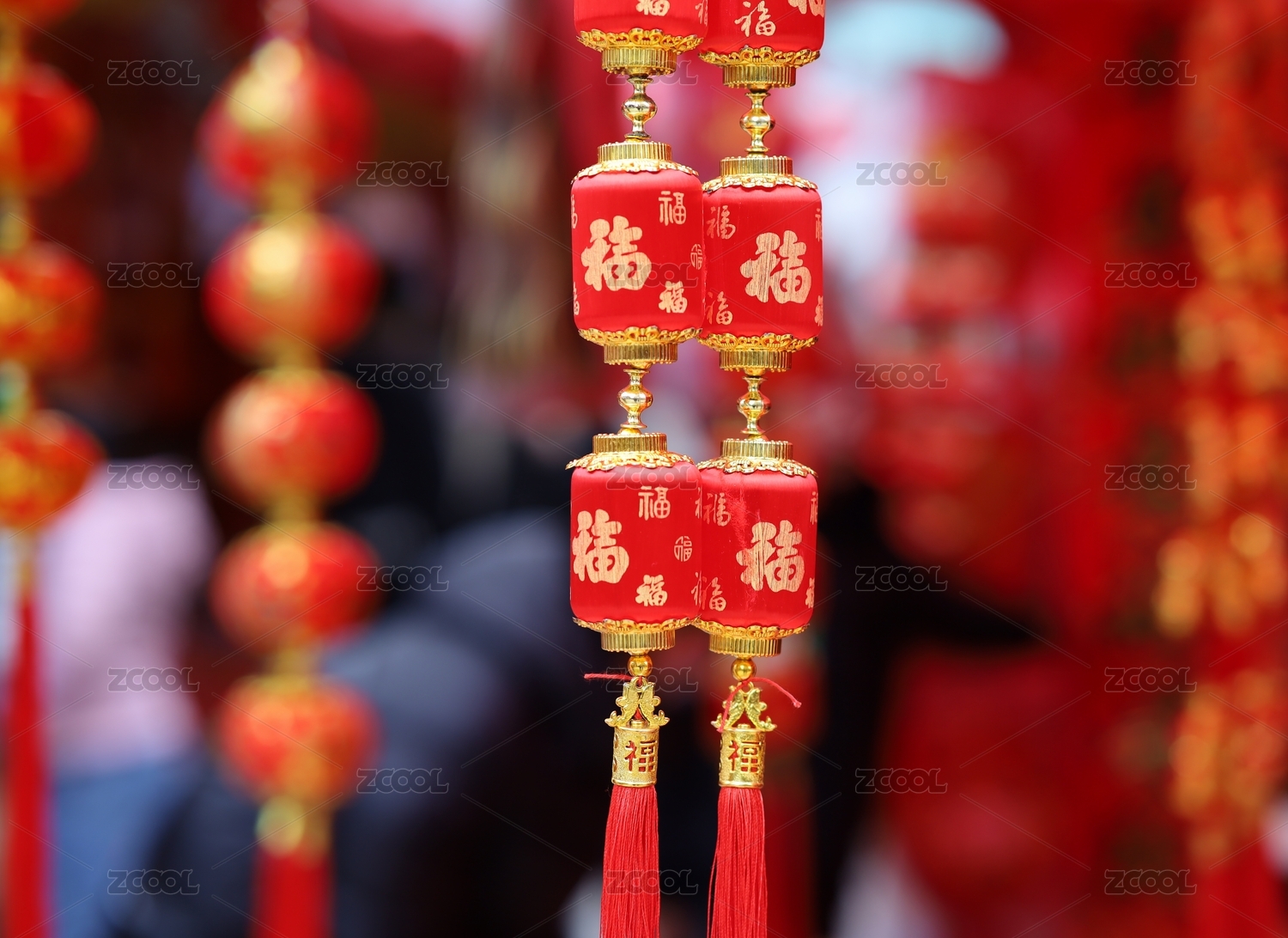 广东省潮州市开元寺红墙树木春节新年挂饰