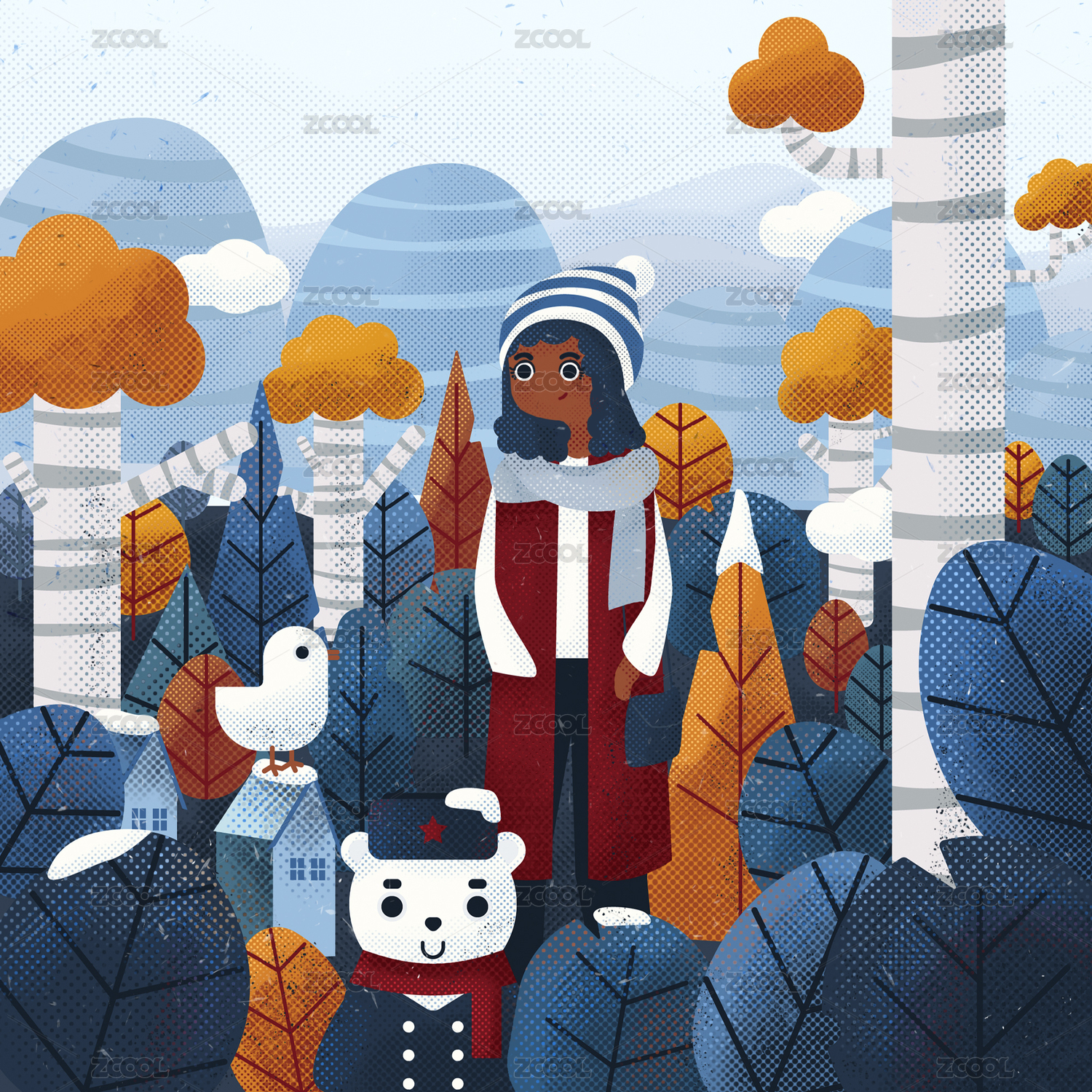 在野外很多颗树前自己拥抱自己的伤感女孩