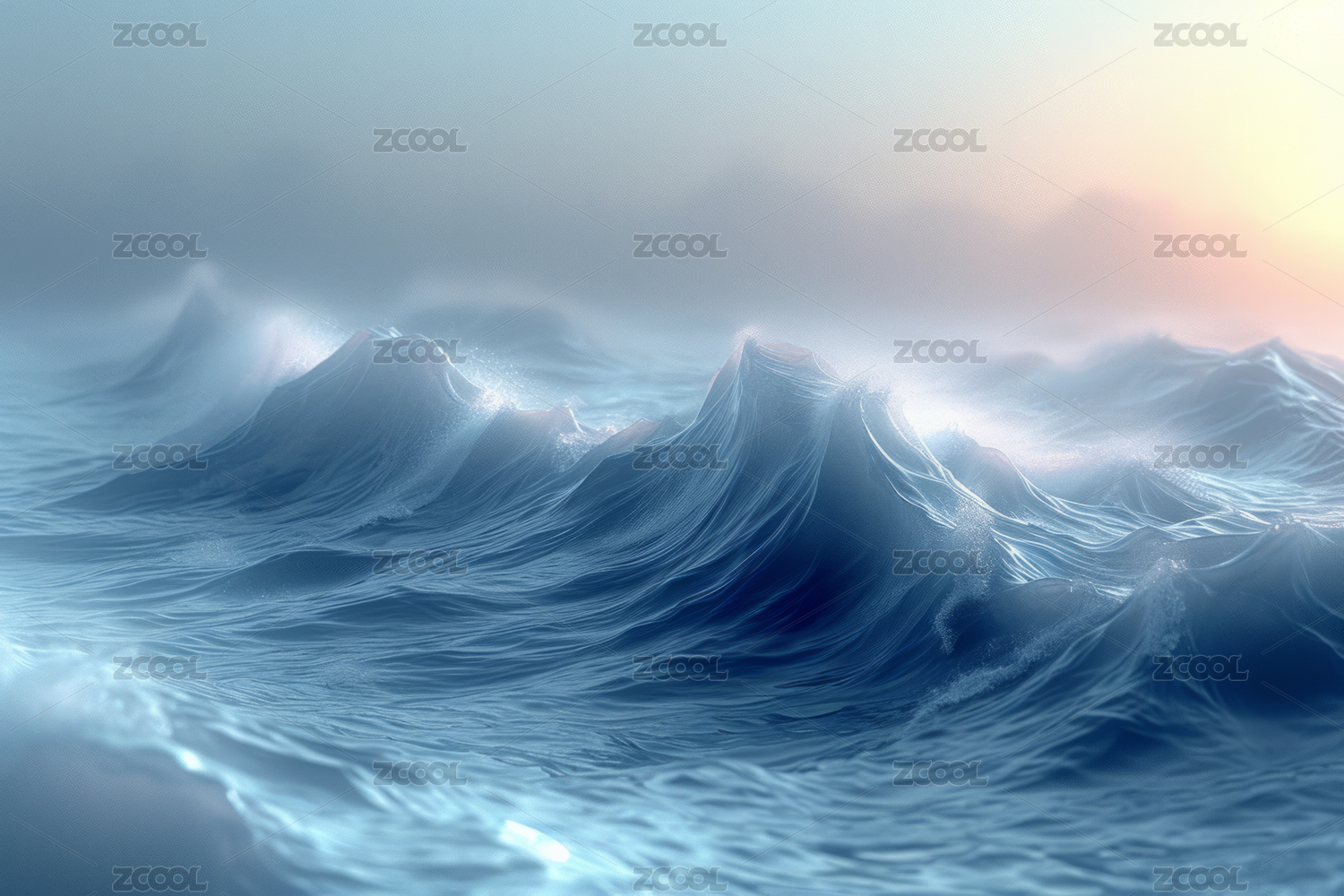 大海海水浪花风浪卡通插画