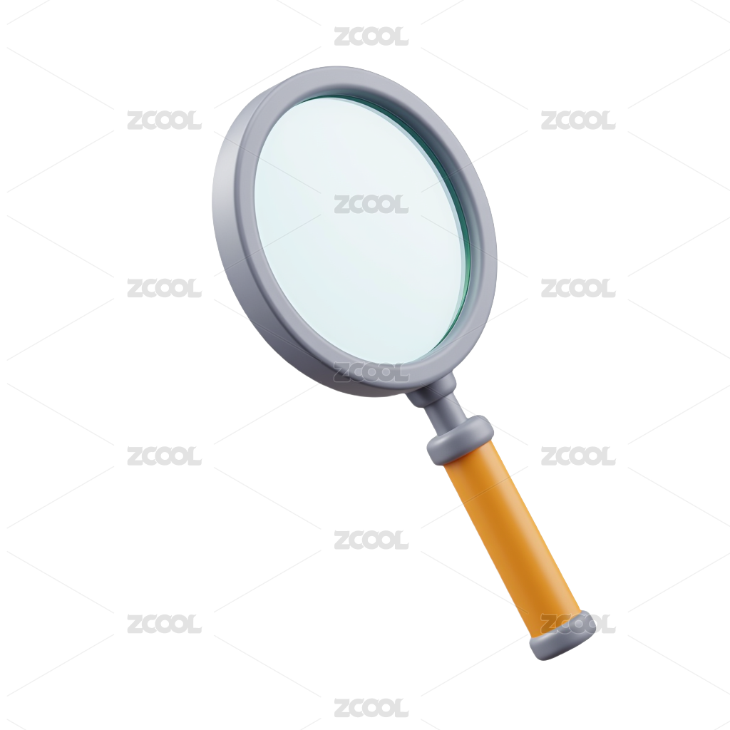 蓝色背景下灵感灯泡台灯铅笔和放大镜微缩创