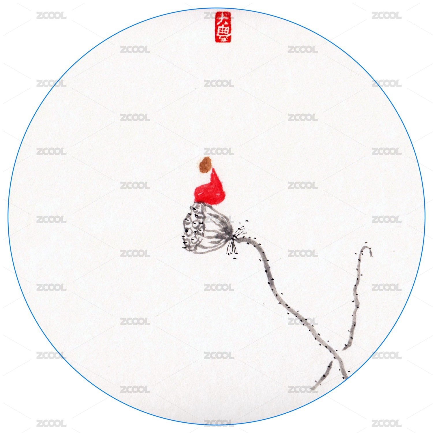 ipad手绘现代极简抽象水墨葫芦花鸟画