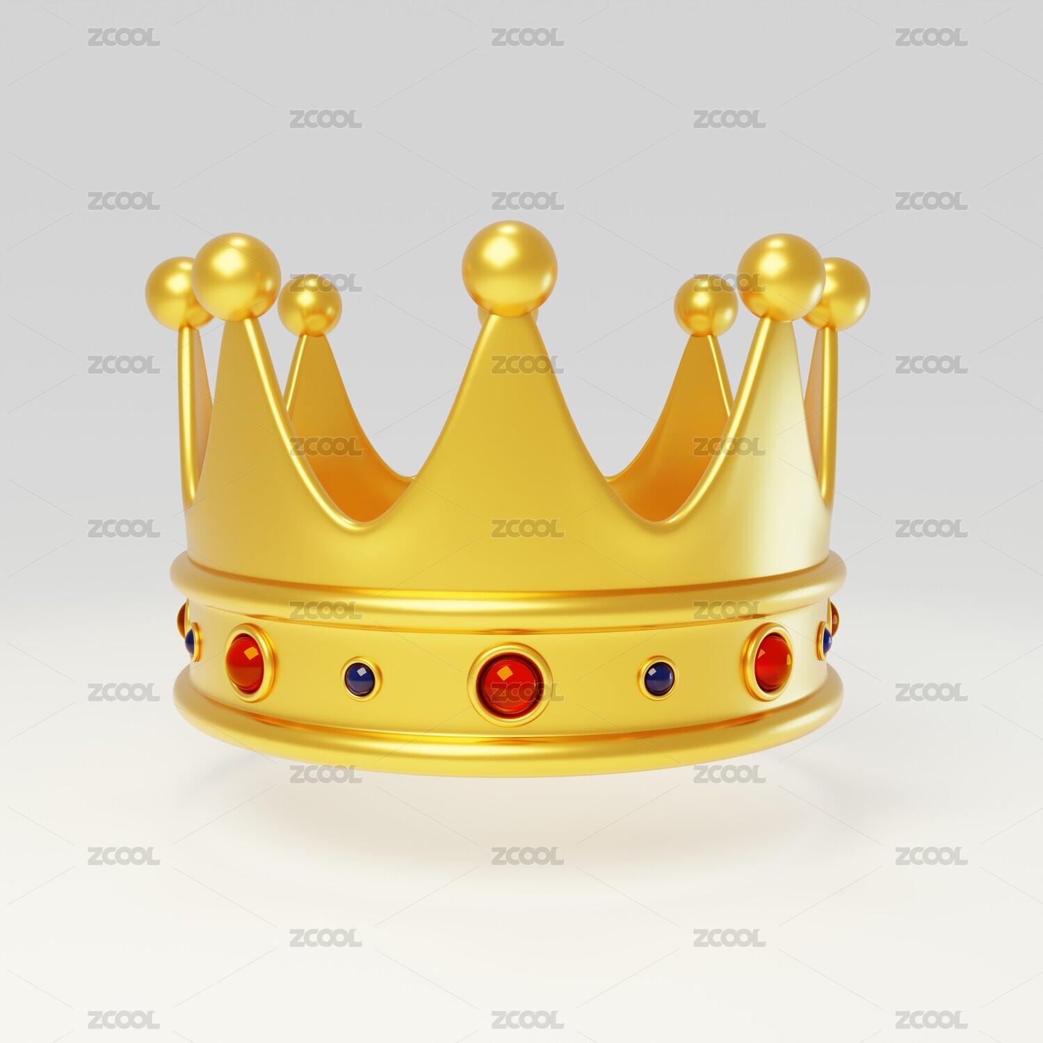 正面尊贵的金色3d红宝石荣誉VIP皇冠