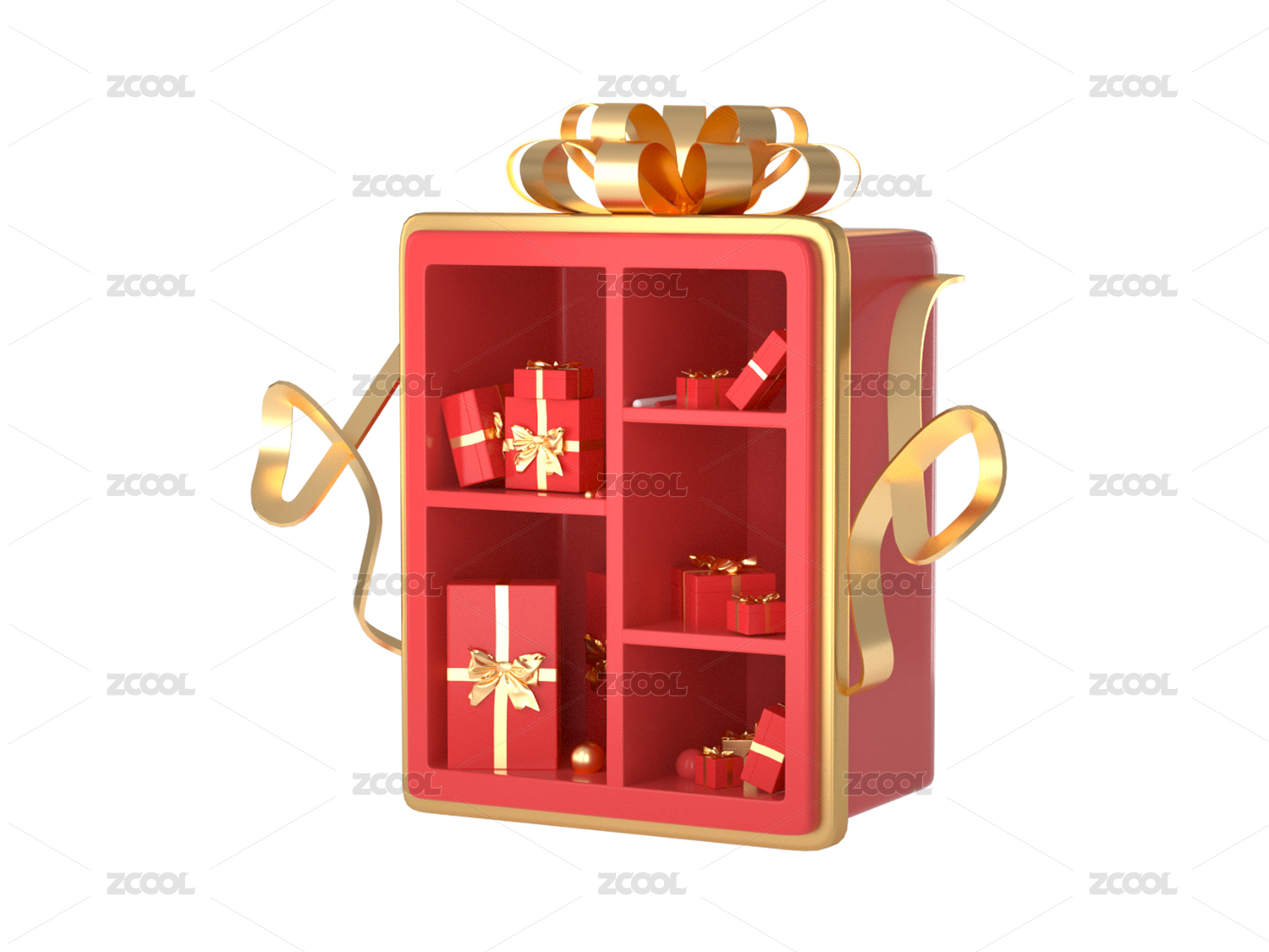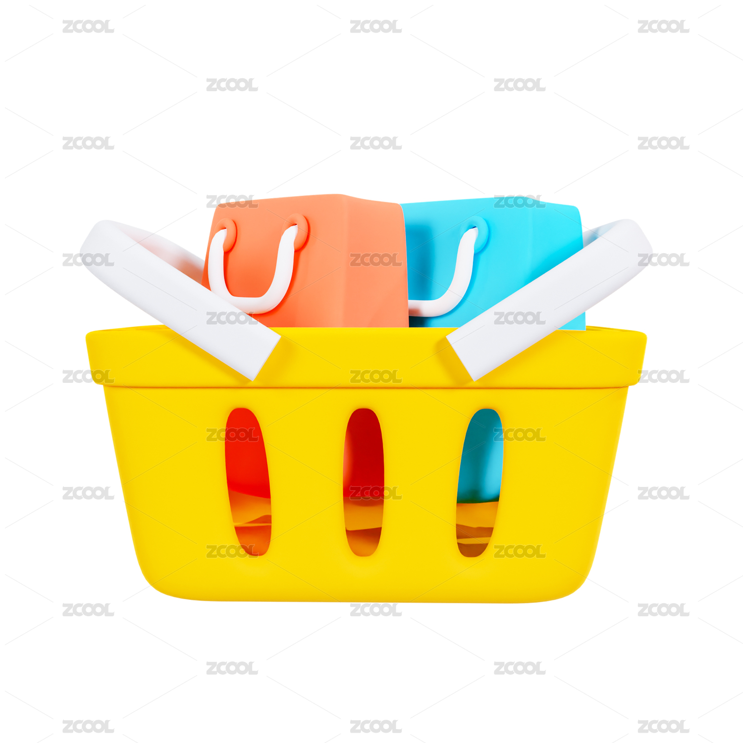 3D渲染的装着礼盒购物袋的购物篮电商元素