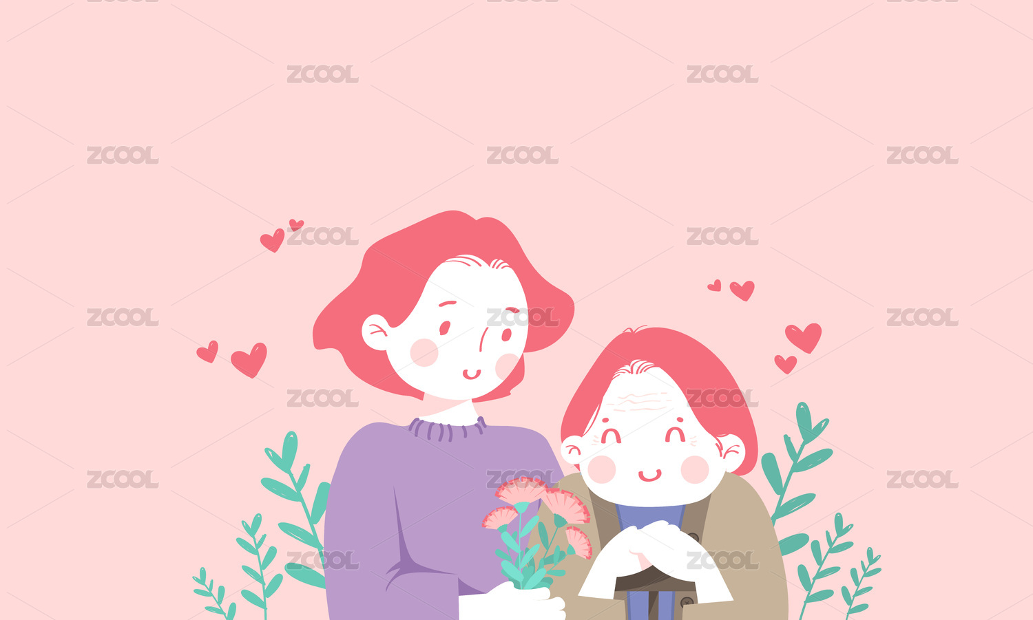 儿子搀扶着年迈主拐杖的父亲走路人物插画