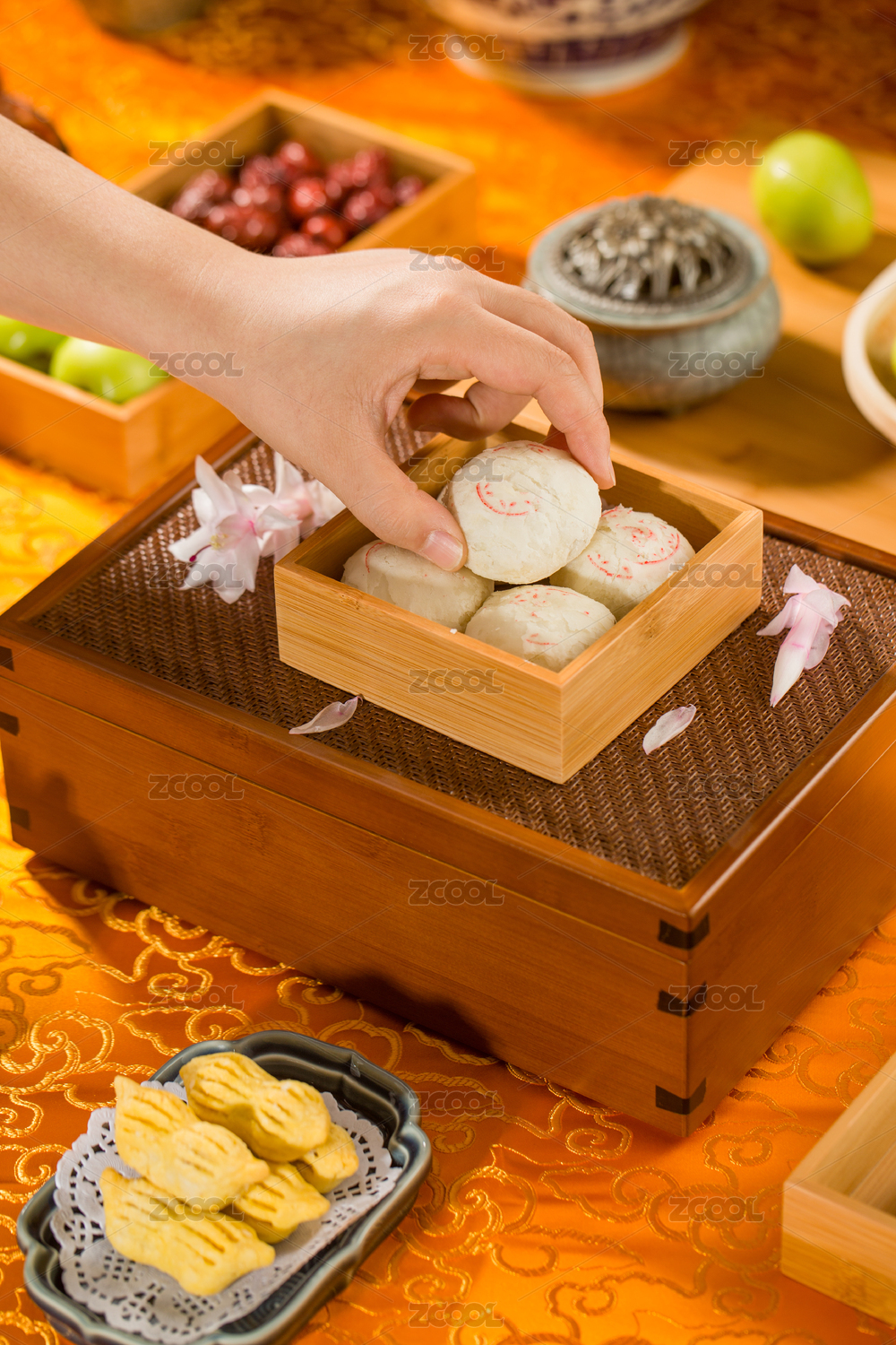 中式餐厅饭桌上摆满了美食有一盘鲜花饼