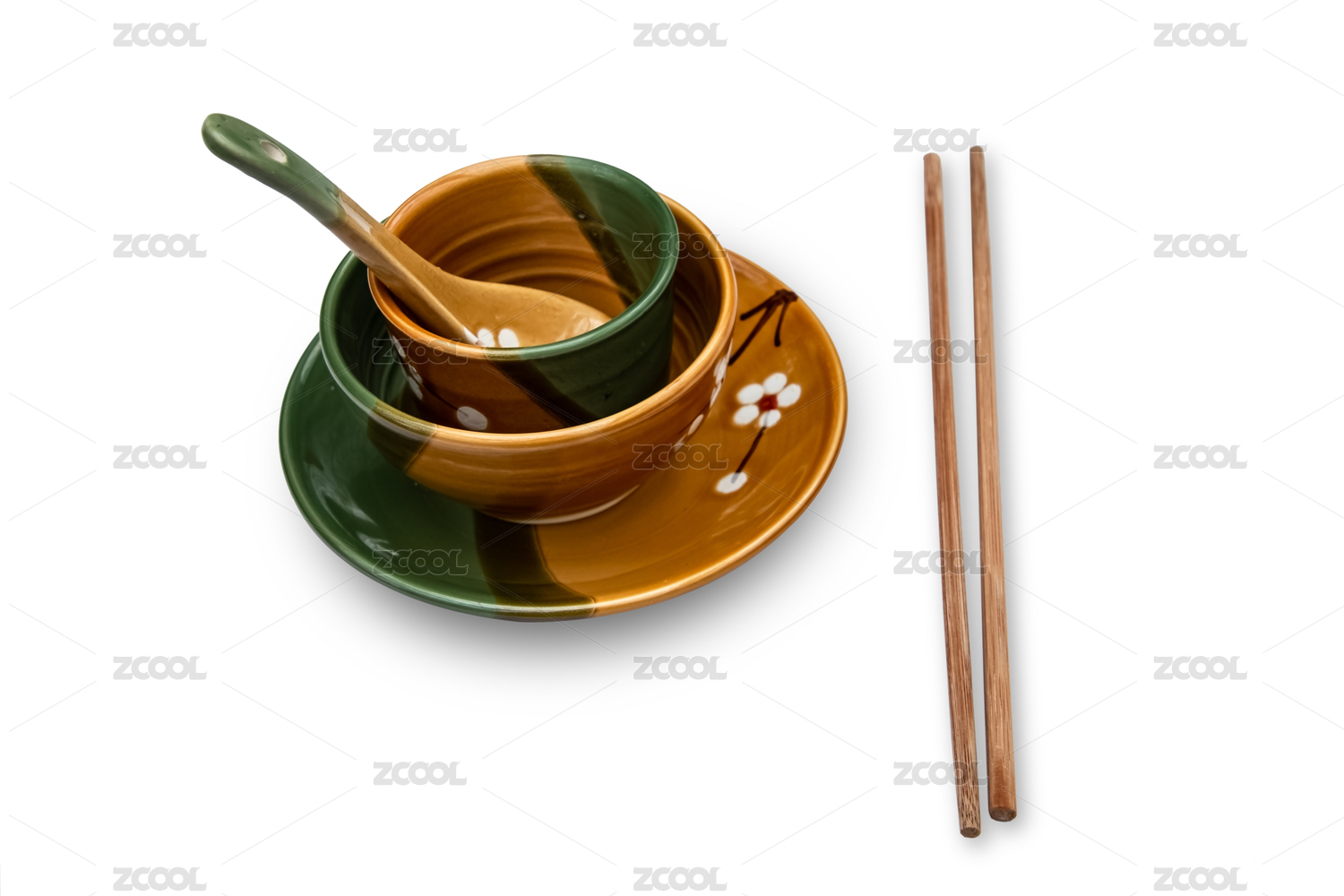 家用饭桌上陶瓷花卉碗碟勺餐具