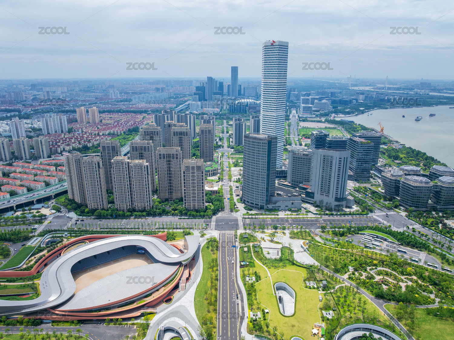 鸟瞰上海后滩公园上海世博文化公园上海SK