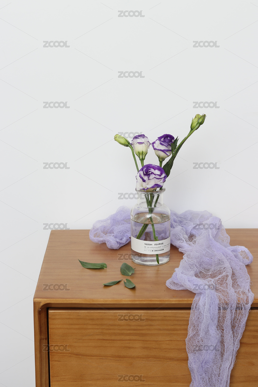 棕色木桌上插在灰陶瓷花瓶里盛开的大黄菊
