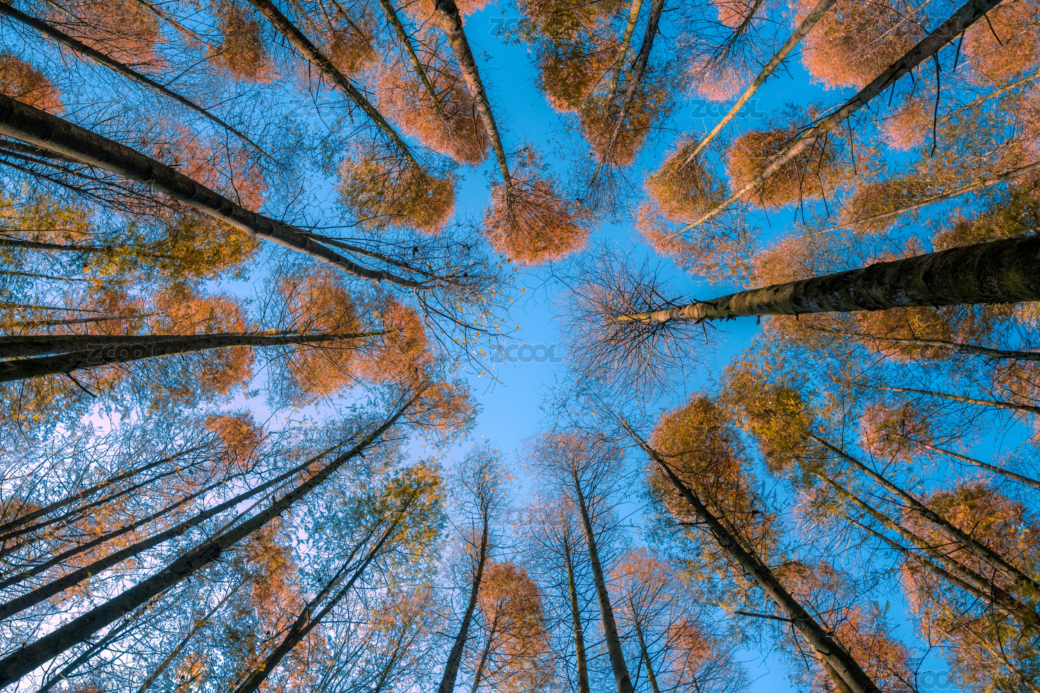 俄罗斯高加索山脉美丽的杉树林落叶秋天