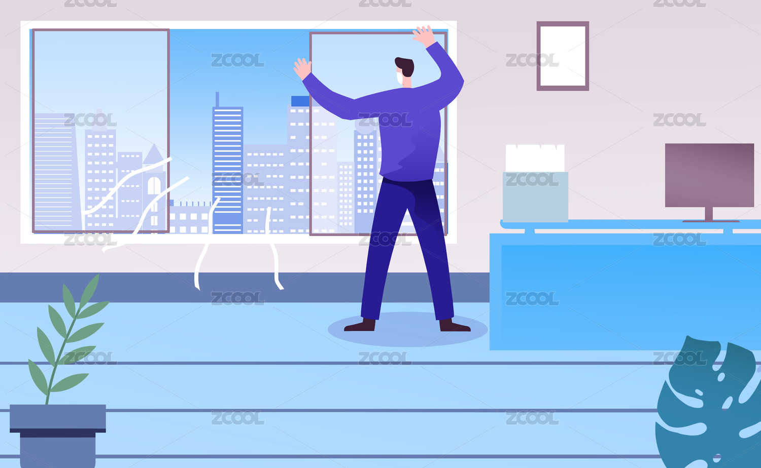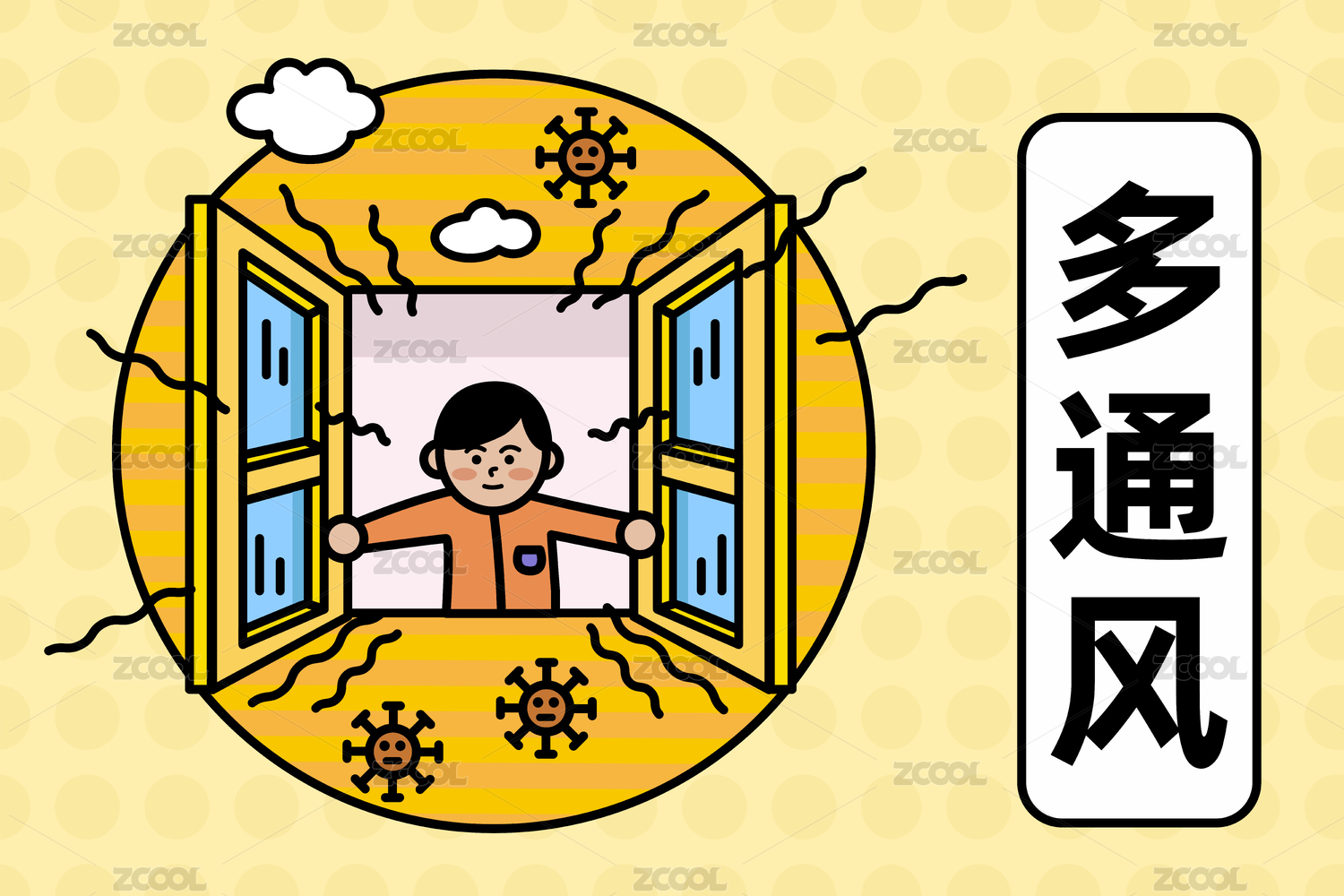 开窗通风的情景