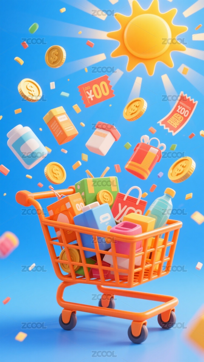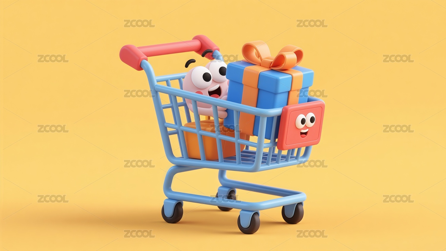 3D卡通风购物车插画