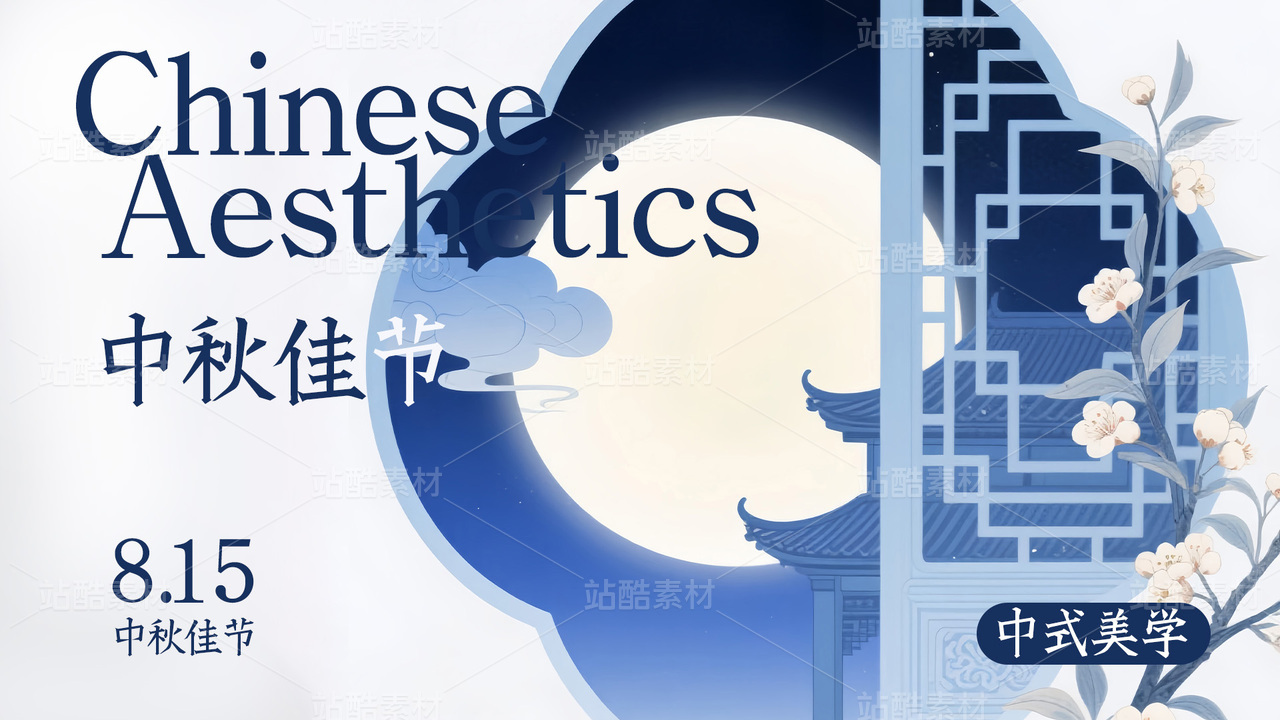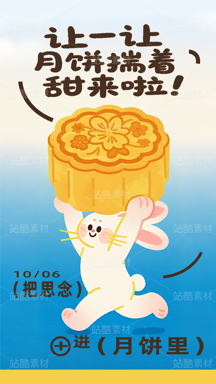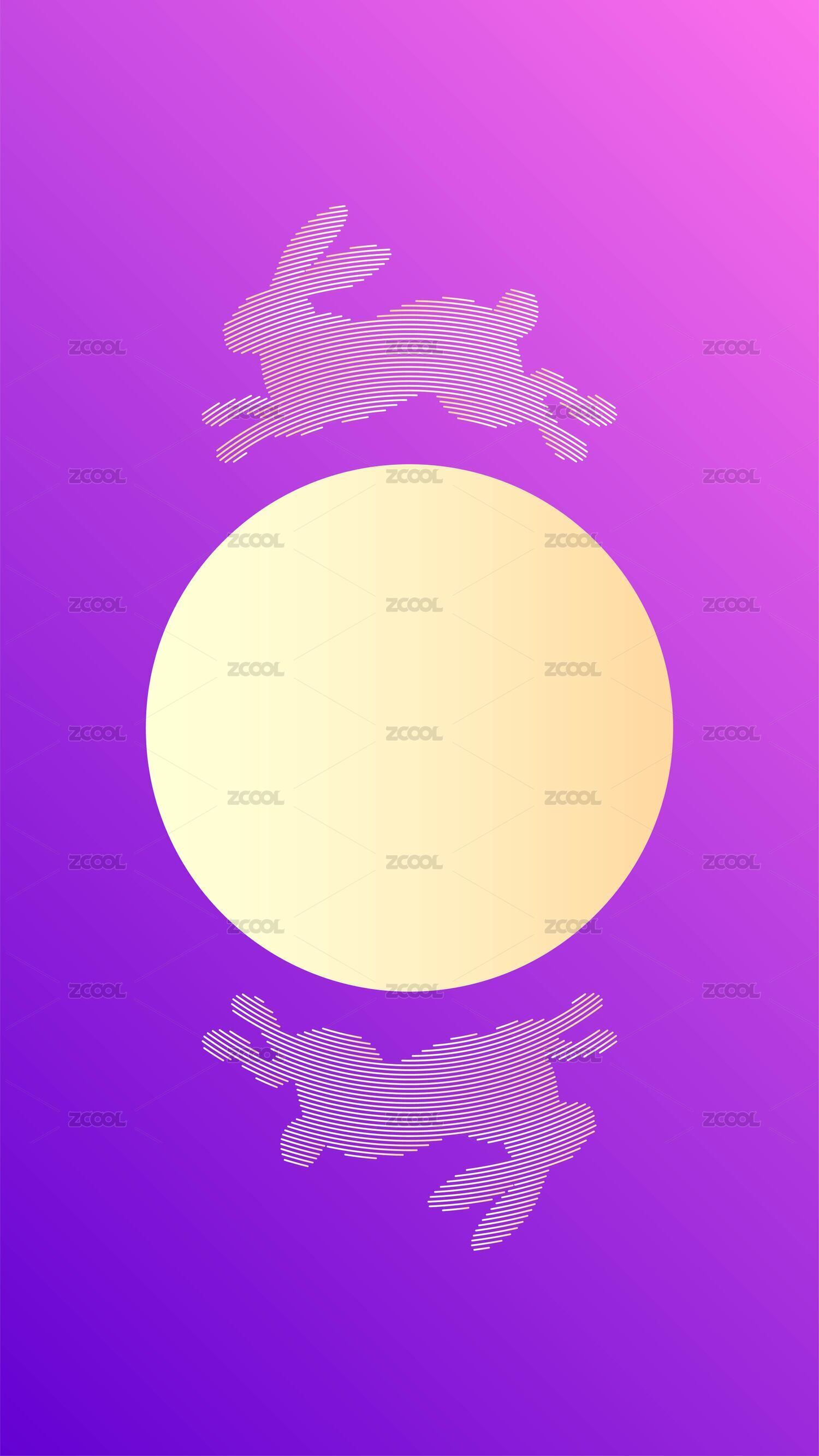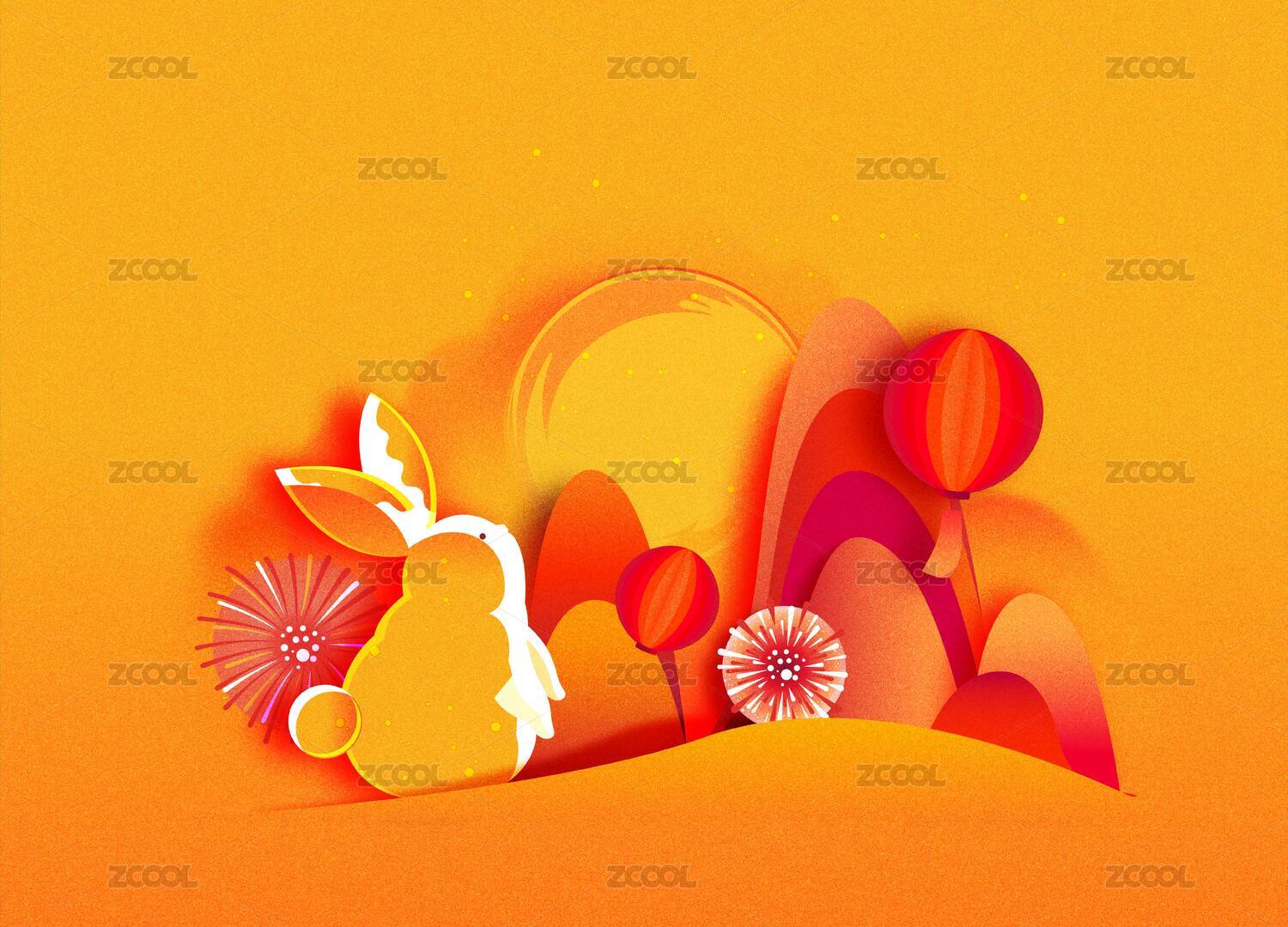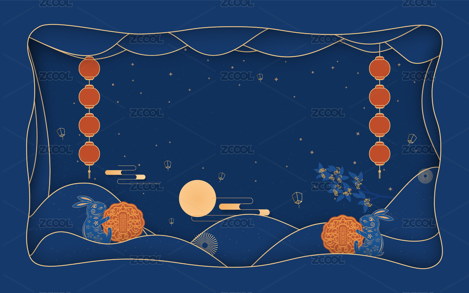 剪纸风格的中秋节矢量海报或贺卡模板,满月和玉兔,祥云图案