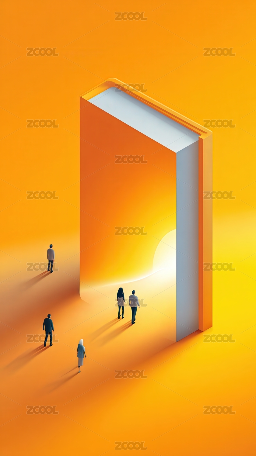 人们走向翻开的巨书