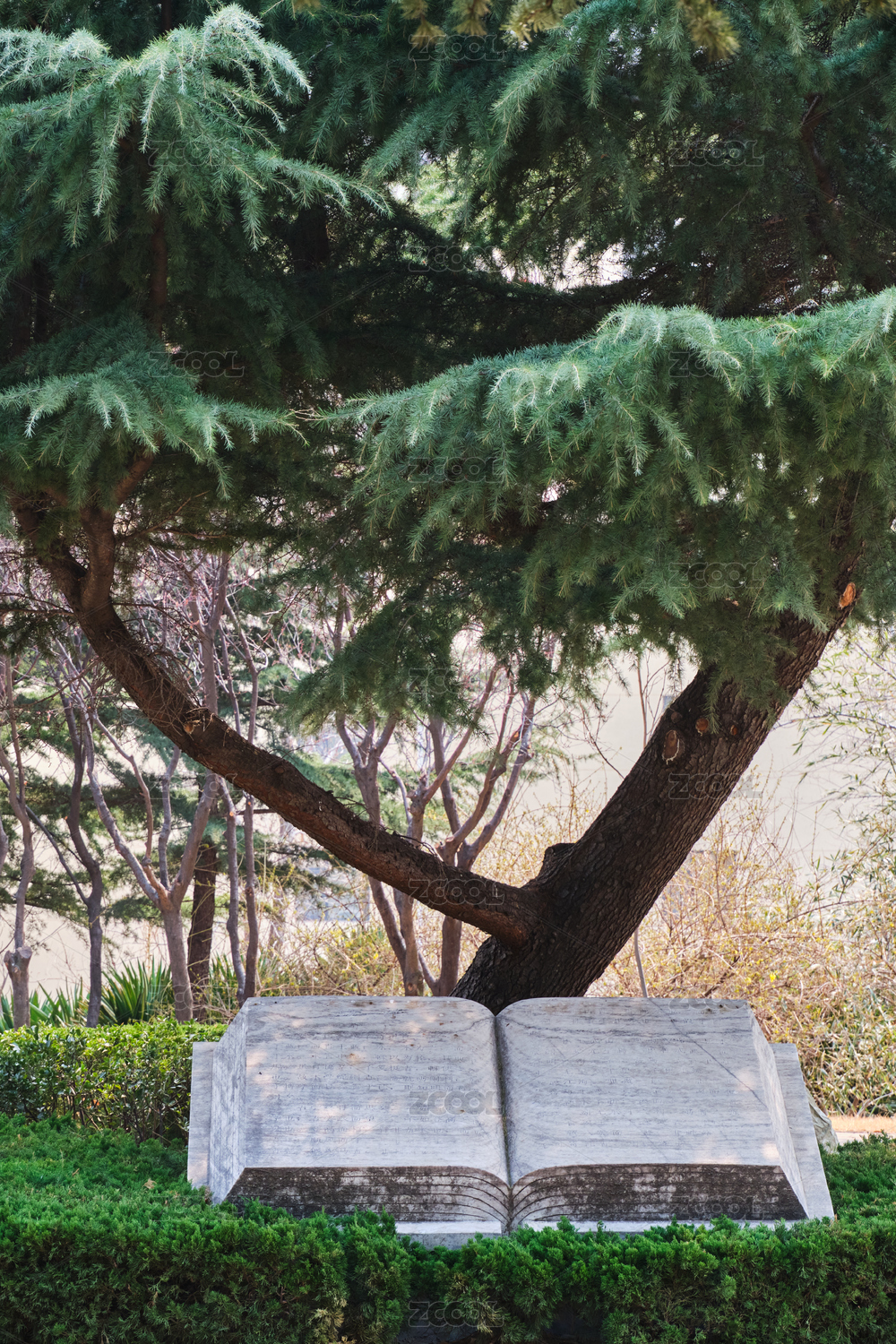Y型巨松下的翻开的石书