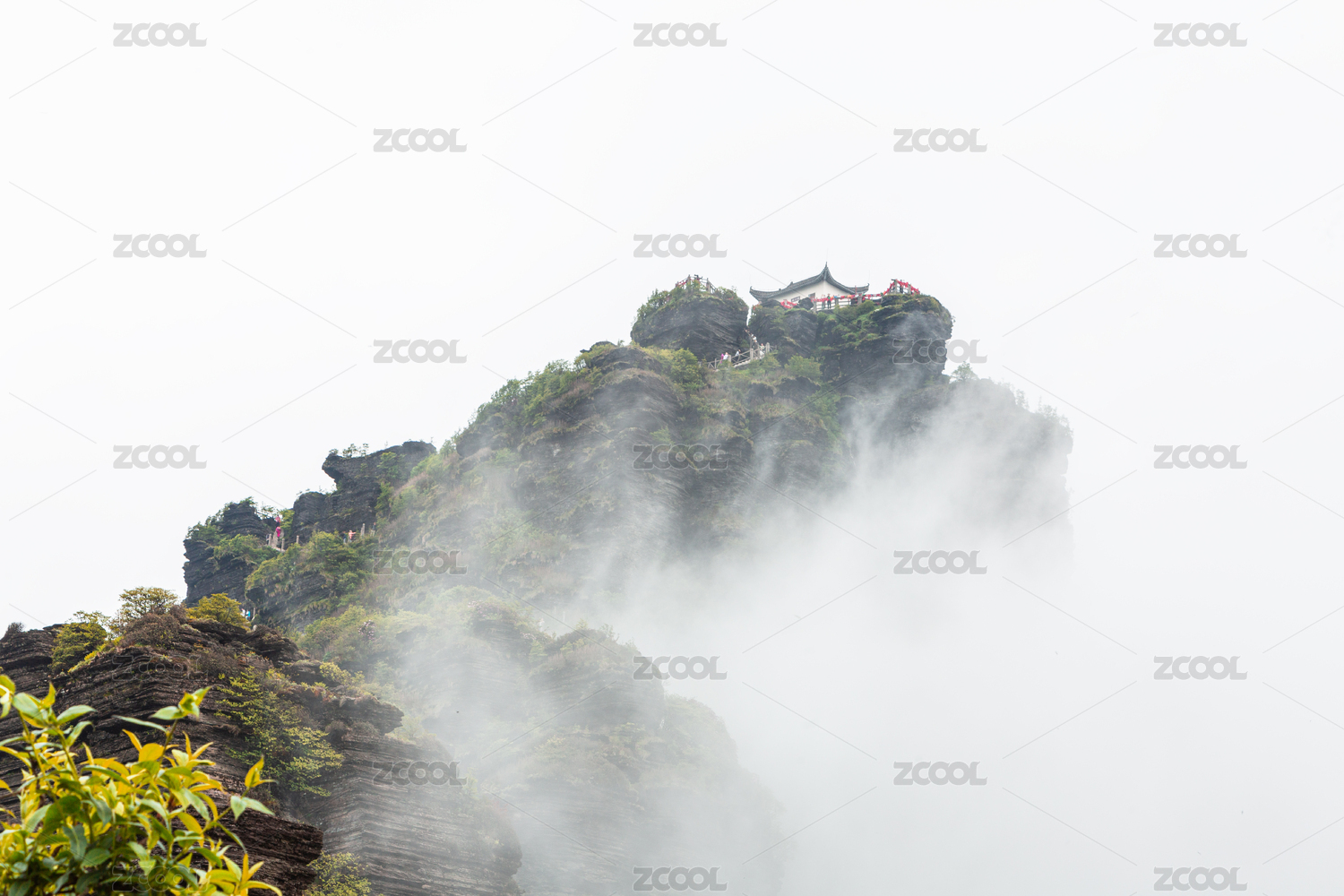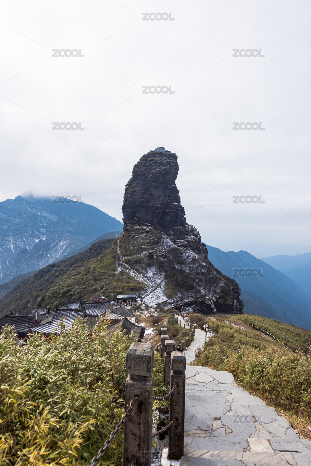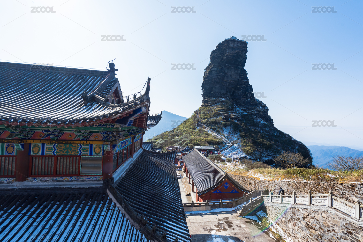 中国贵州铜仁梵净山冬季晴天下的蘑菇石