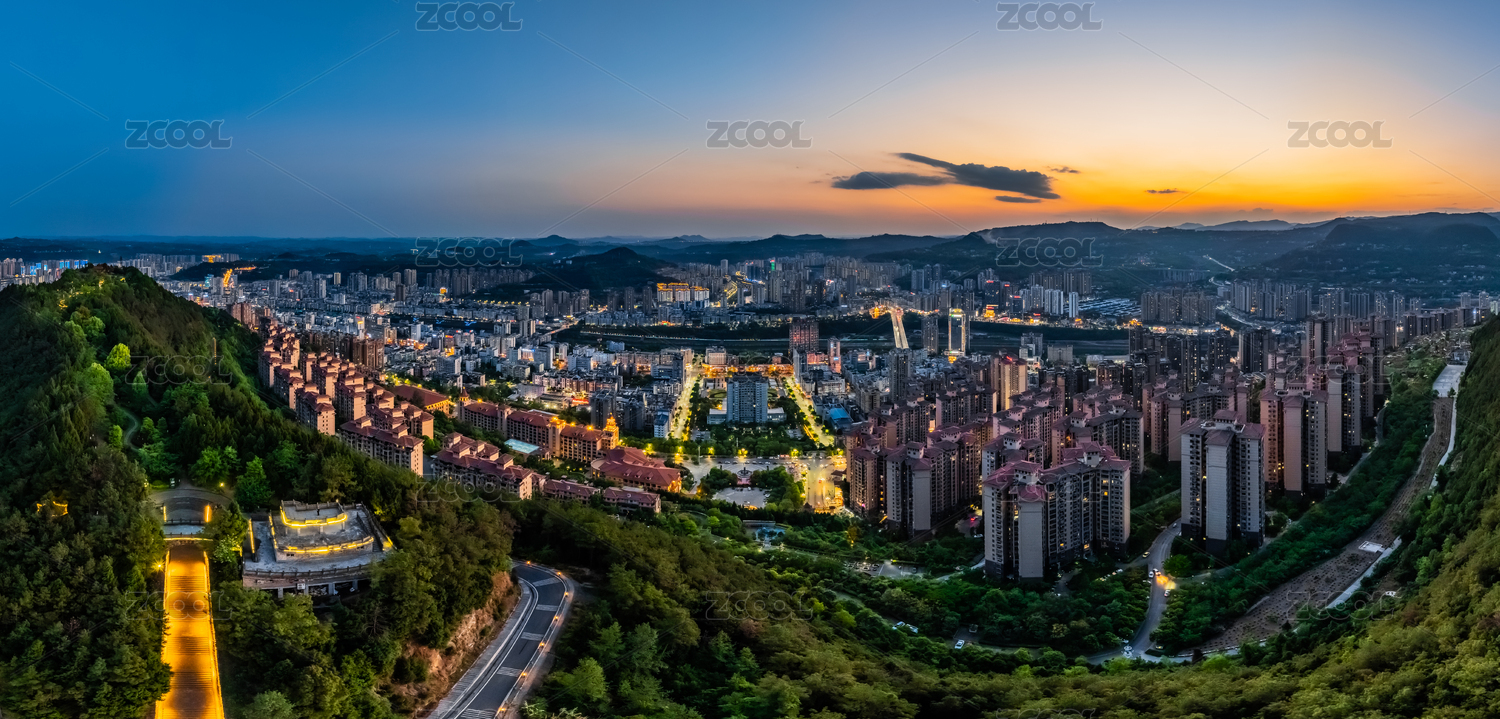 中国四川省巴中市黄昏望王山城区高楼建筑