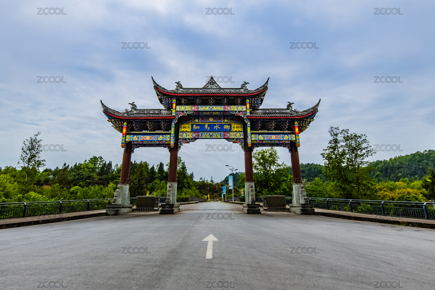 中国四川省平昌县驷马水乡牌坊园林建筑