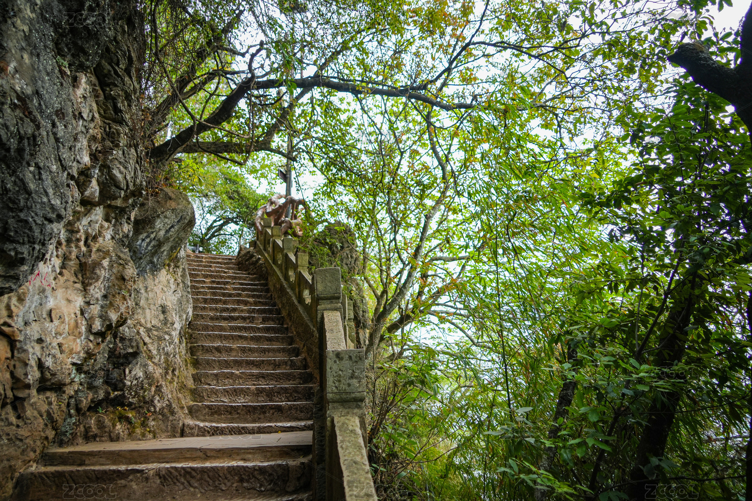 中国云南省昆明市西山风景区崎岖的石台阶路