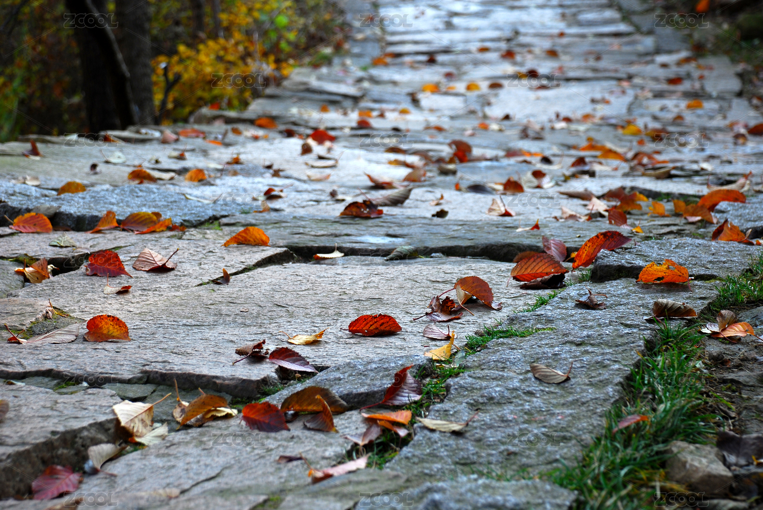 石板路落叶