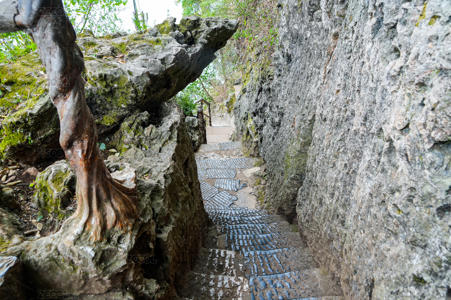 云南省昆明市西山风景区崎岖的石台阶路