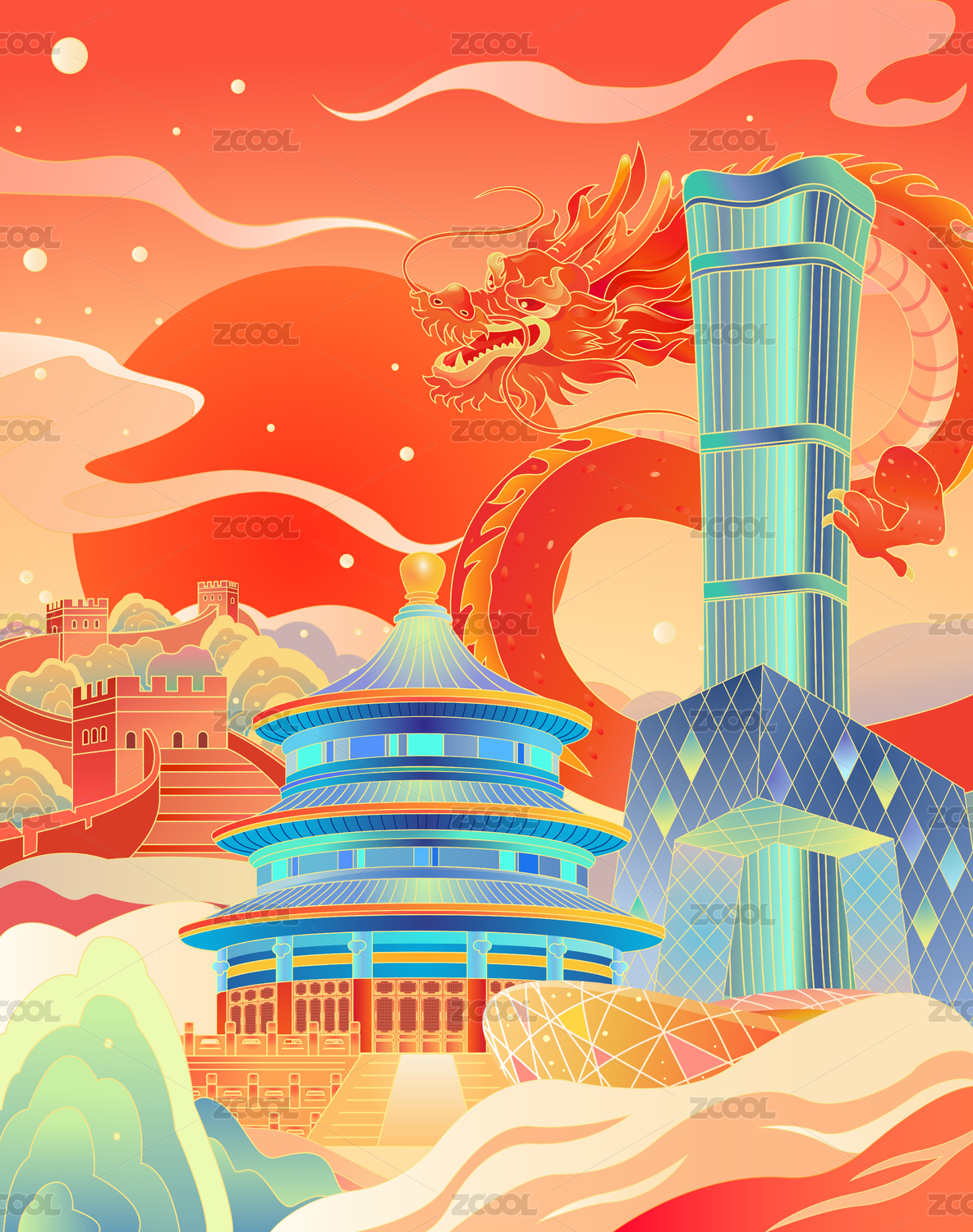 北京地标国潮插画竖版