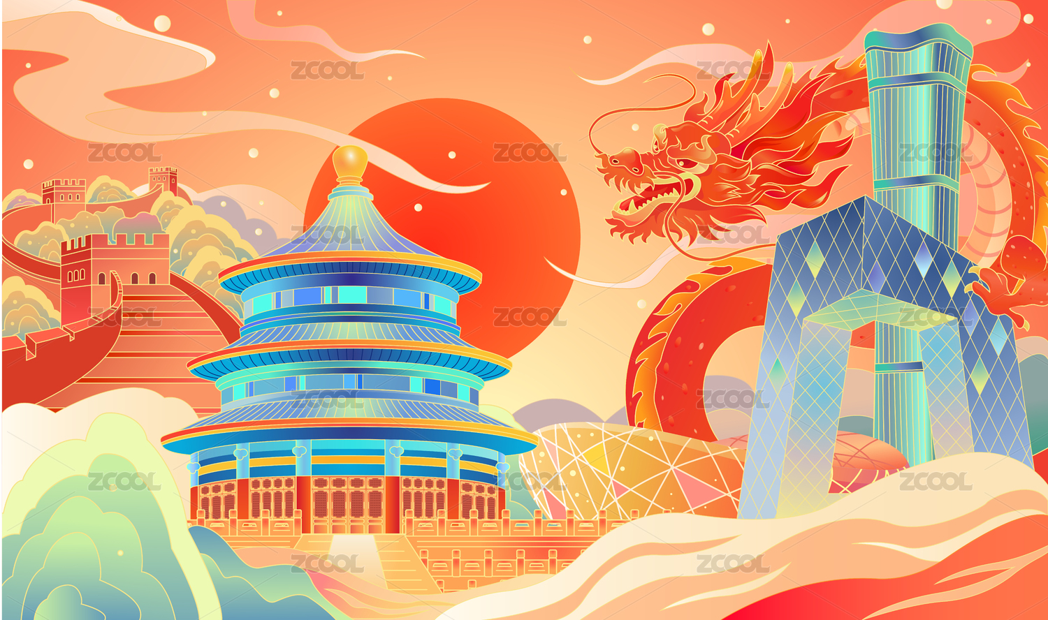 北京地标国潮插画