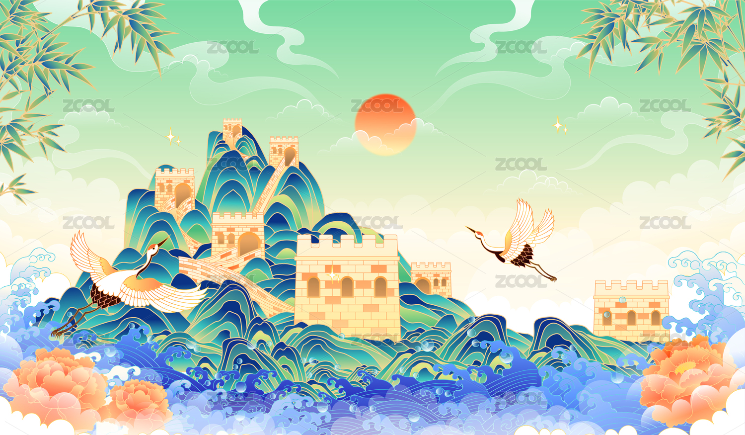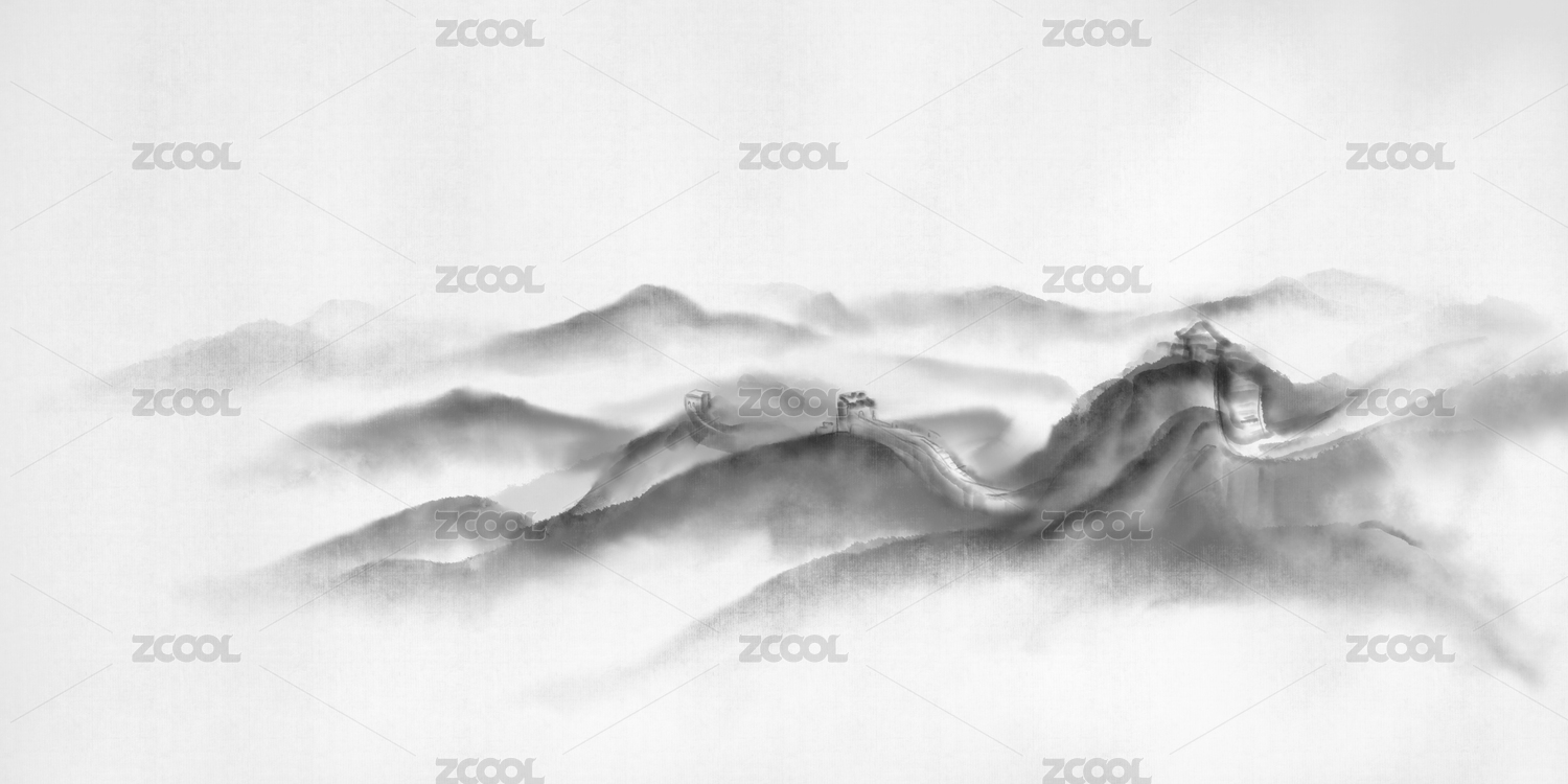 水墨手绘万里长城