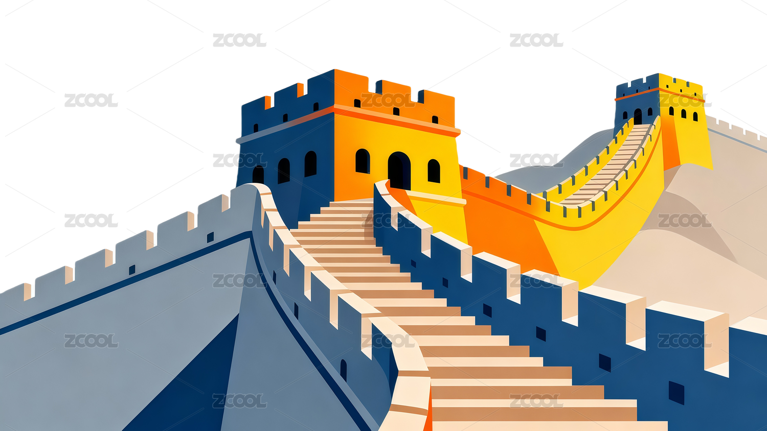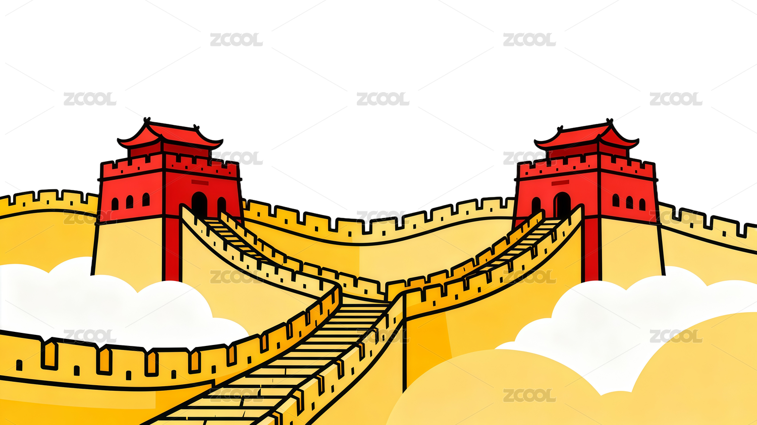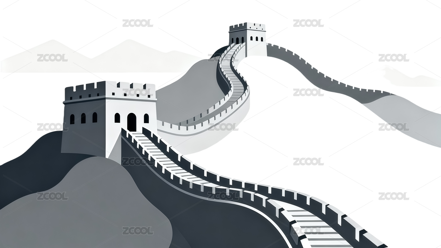 线条插画-长城