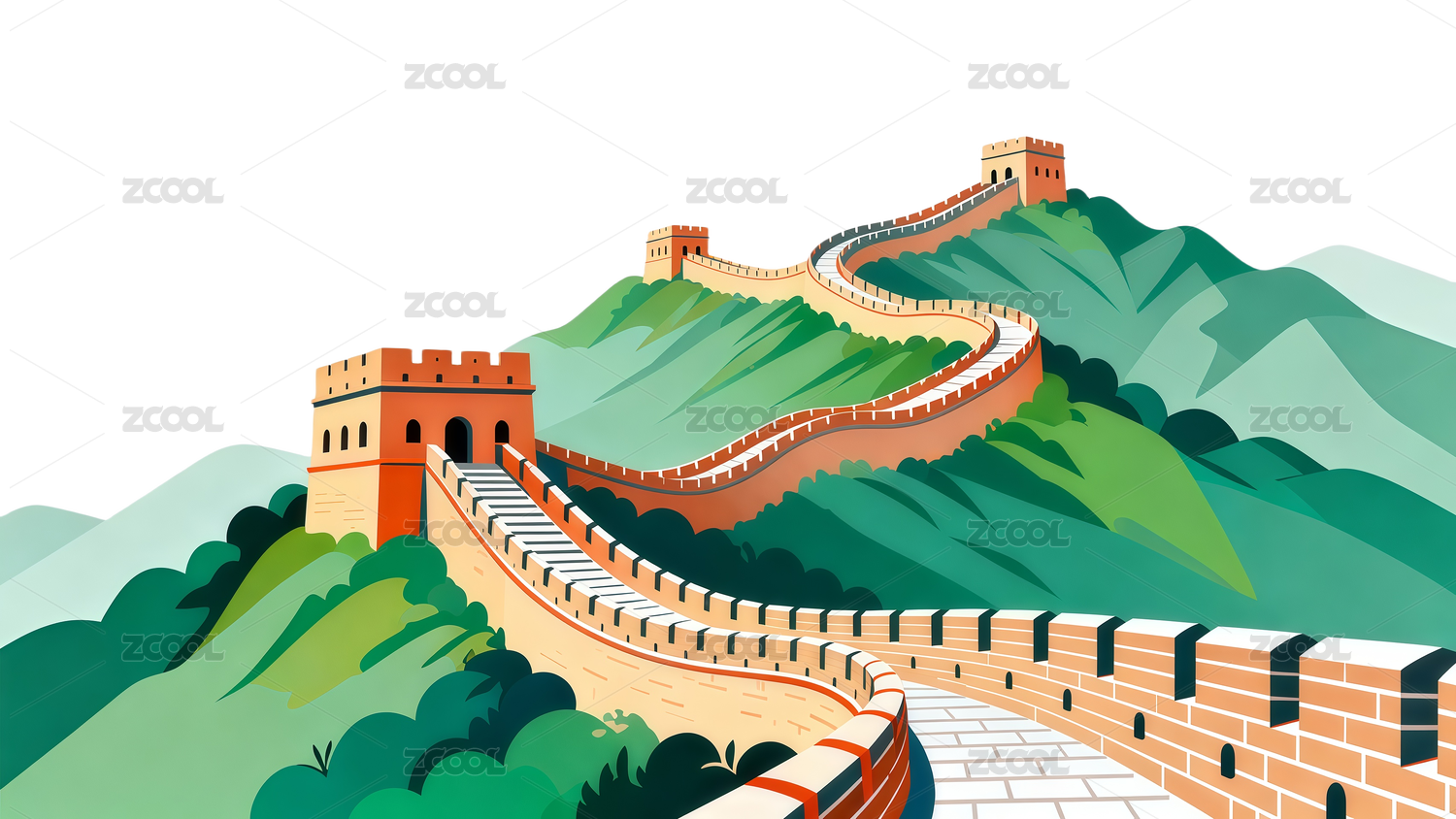 北京长城风景矢量插画